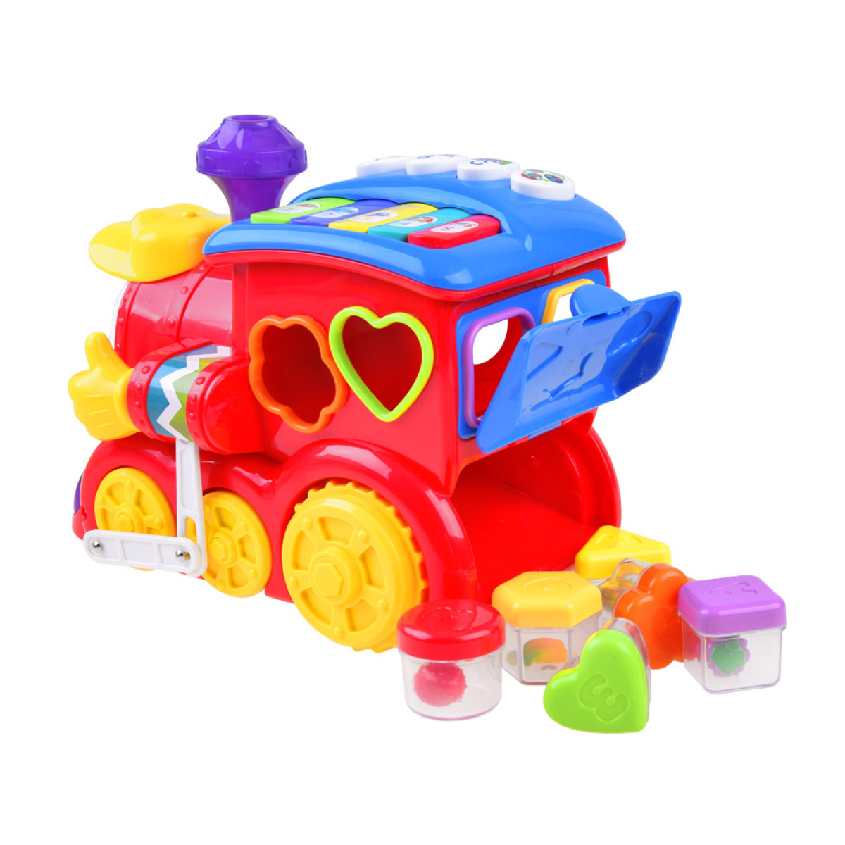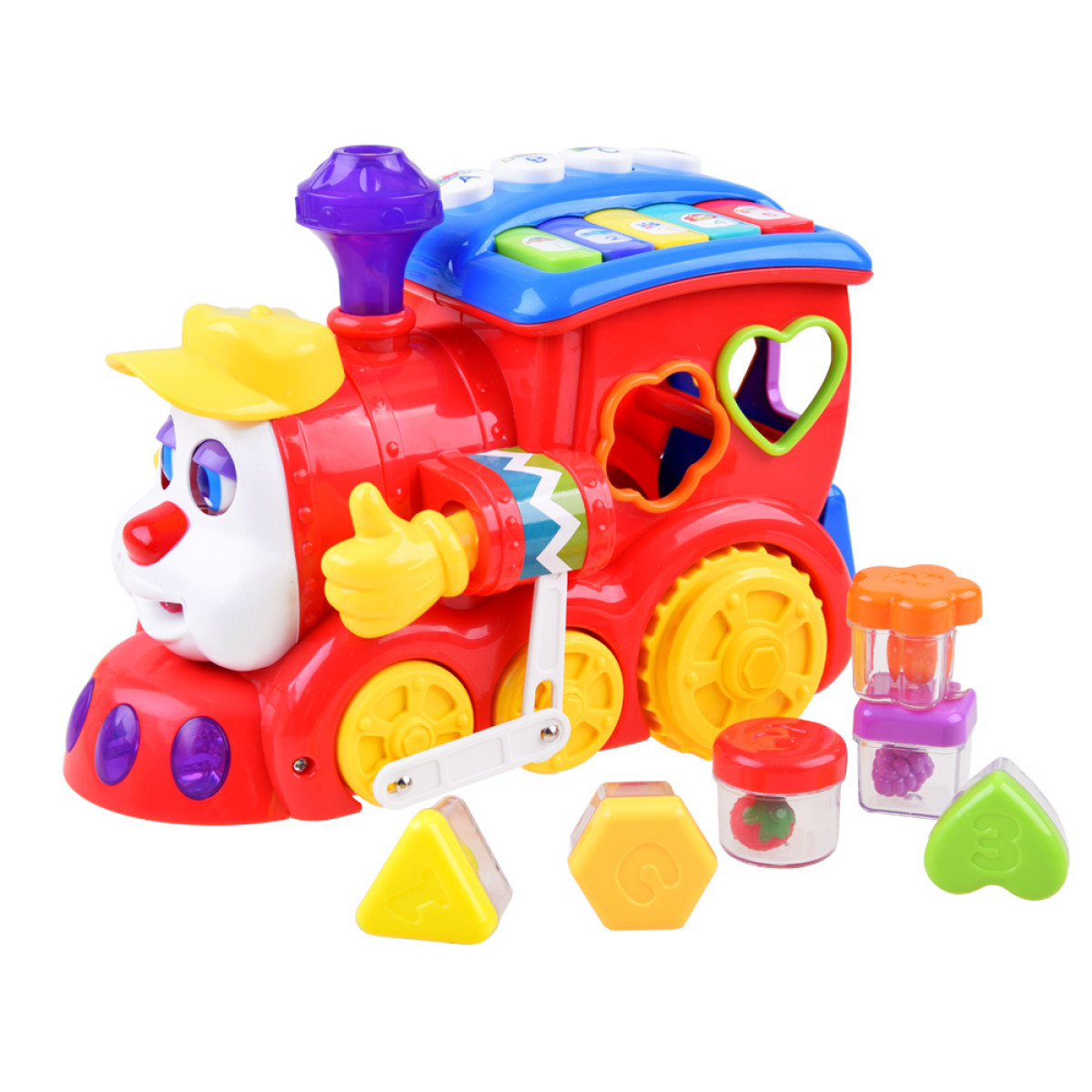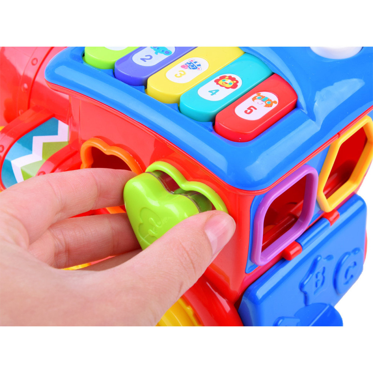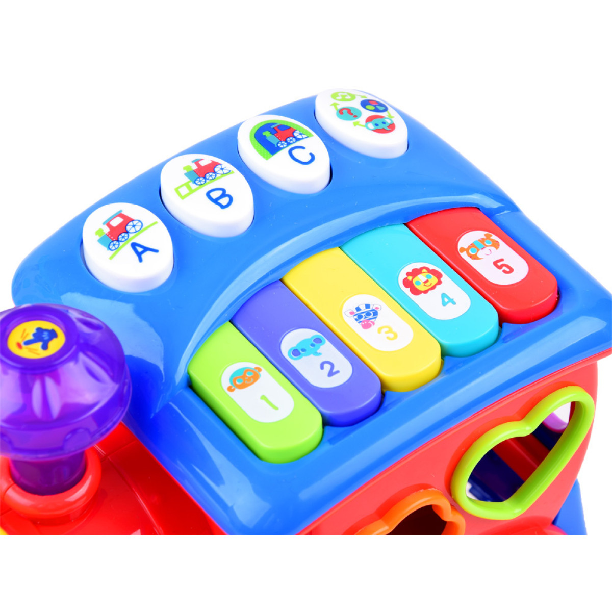 Spalvinga edukacinė lokomotyva su klotais – muzikinis žaislas