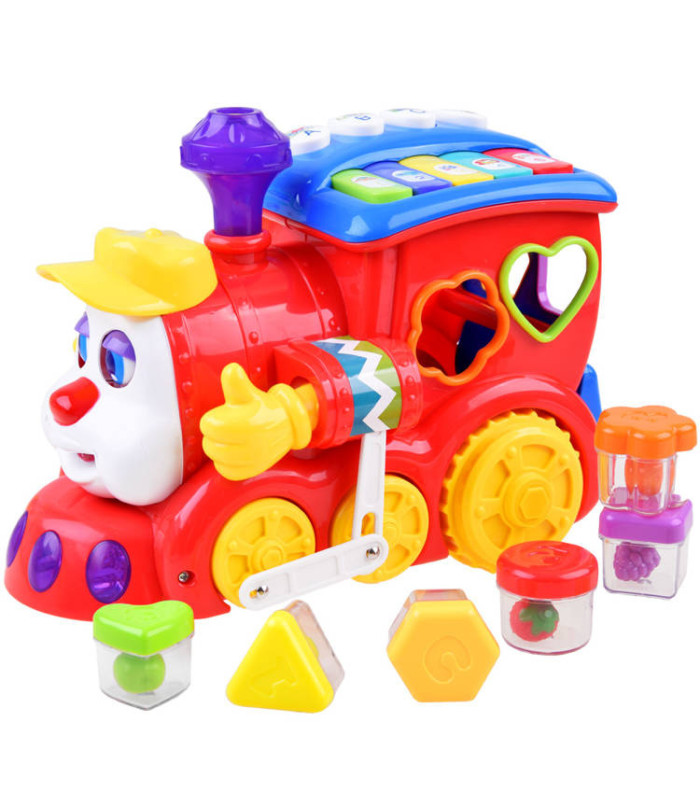 Žaislas turi rinkinį spalvotų klotų su įvairiomis formomis, kuriuos reikia įdėti į atitinkamas skylutes lokomotyvoje. Kiekvienas klotas turi viduje vaisių, o viršuje raidę arba skaičių:
