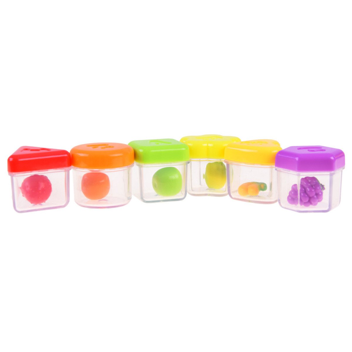 - 6 spalvoti klotai su vaisiais, raidėmis ir skaičiais