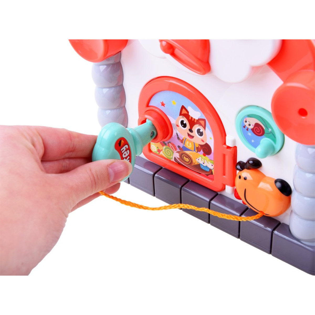 Interaktyvus namelis, turintis daug įdomių funkcijų, skirtas vaikams nuo 18 mėnesių amžiaus. Žaislas pagamintas iš aukštos kokybės plastiko, ryškiomis spalvomis ir patraukliais raštais. Šis atradimų namelis įrengtas su įdomiais garsais, natūraliais gyvūnų garsais, linksmomis melodijomis, formų derinimo rūšiuotuvu, skaičiavimo lentelėmis, pianinu ir kt. Žaislas skatina tyrinėti ir pažinti. Lavinamasis namelis auga kartu su vaiku.