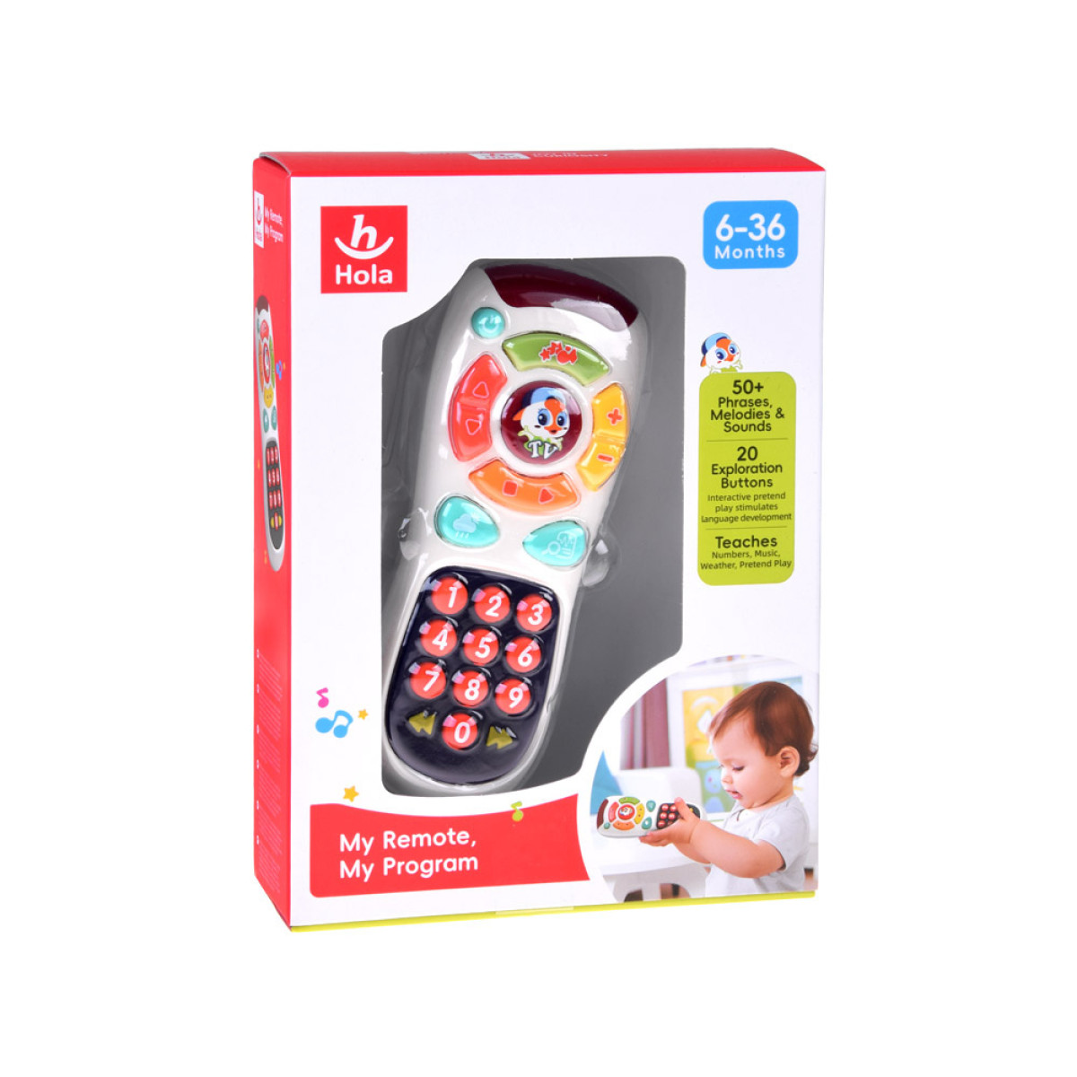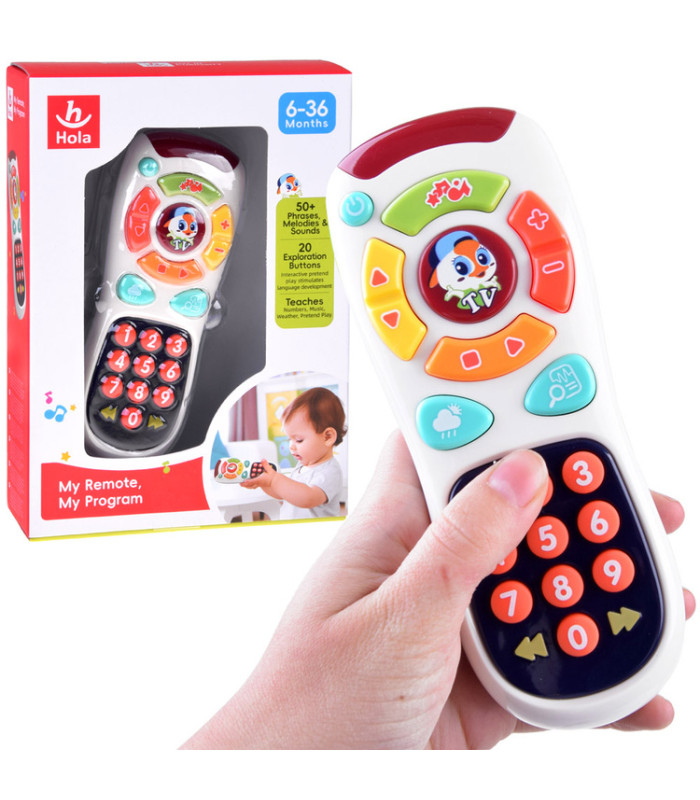 Interaktyvus žaislas – televizoriaus pultas – yra Hola įmonės pasiūlymas smalsiems mažyliams nuo 6 mėnesių amžiaus. Šis televizoriaus pultas turi daugybę spalvingų ir įdomių mygtukų, kurie pritrauks kiekvieną mažylį žaisti.