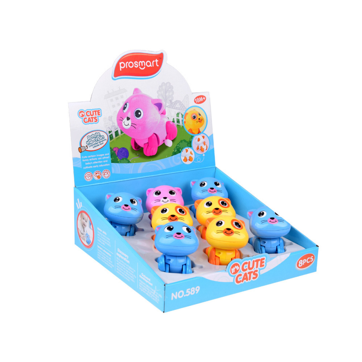 Šis mielas žaislinis katinėlis žavi visus vaikus. Tai puikus draugas mažyliams, kurie pradeda ropinėti. Paleiskite katinėlį ant grindų ir jis judės, judindamas akis ir uodegą. Šis įdomus veiksmas skatina vaiką sekti žaislą ir drąsiau ropoti. Linksmas ir draugiškas katinėlis suteiks begales džiaugsmo mažyliui. Žaislas yra sukurtas specialiai patiems mažiausiems vaikams, jo dydis pritaikytas mažoms rankytėms. Katinėlis pradeda judėti, kai užveržiama spyruoklė.