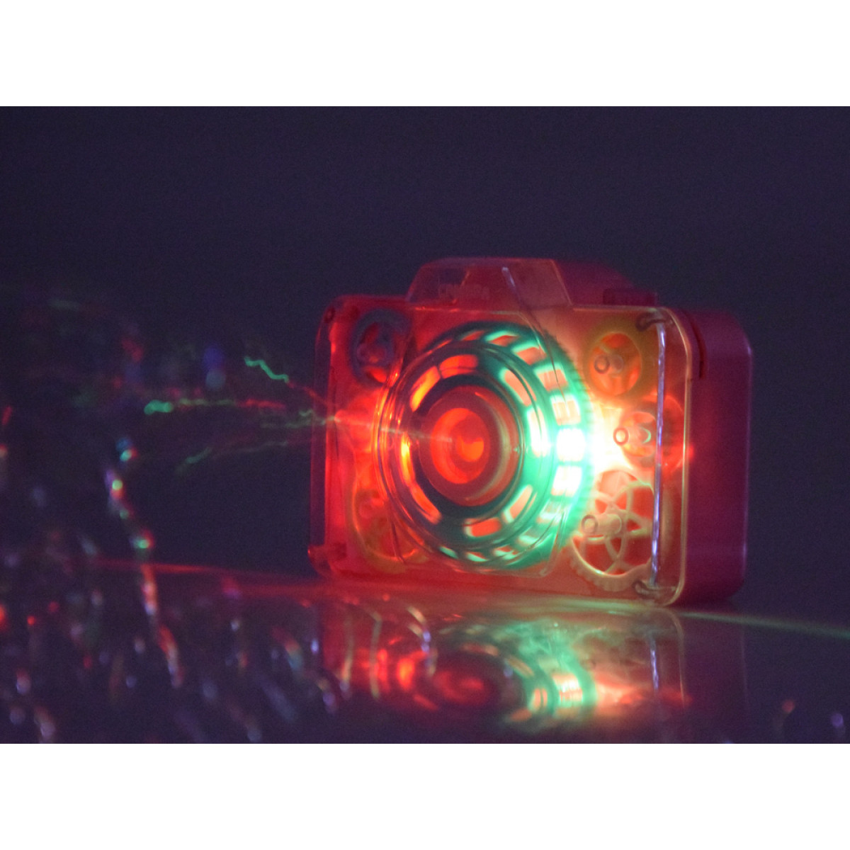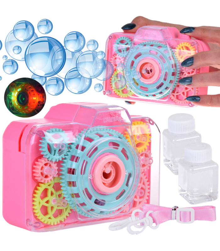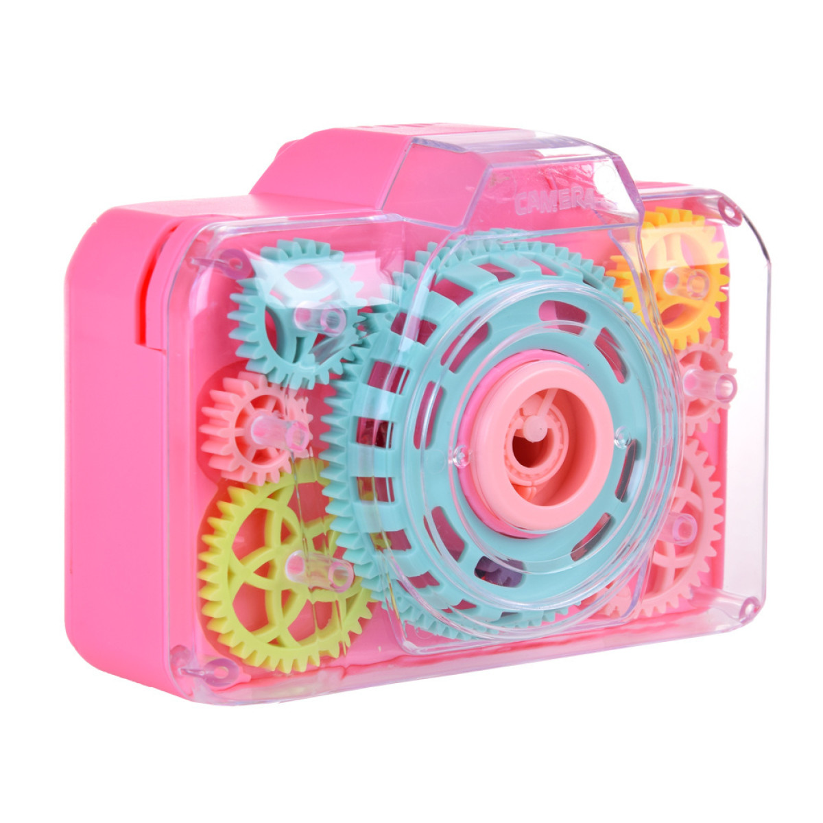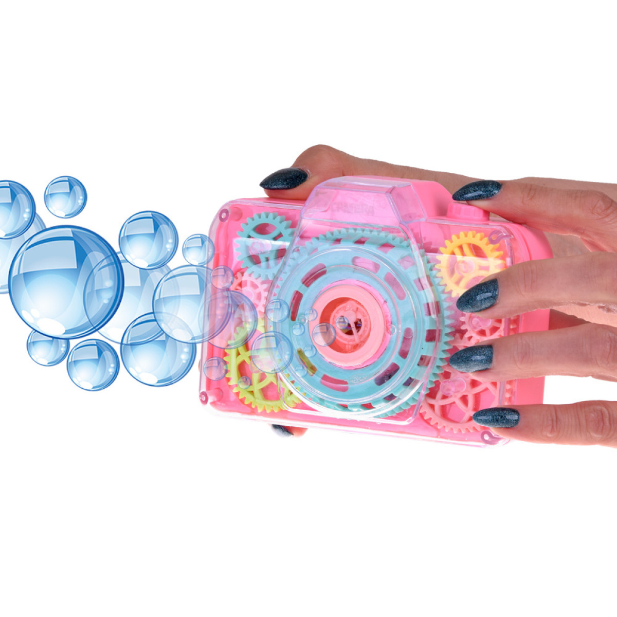 Kaskart paspaudus mygtuką, fotoaparatas skleidžia realistiškus užrakto garsus ir mirksinčias šviesas, imituojančias fotografavimo procesą, todėl žaidimas tampa dar įdomesnis ir įtikinamesnis. Bet tai dar ne viskas! Fotoaparatas turi įmontuotą mechanizmą muilo burbulų skleidimui, kurie kyla ore, sukurdami magišką efektą, kuris sužavi kiekvieną. Be to, pro skaidrią korpusą matomos besisukančios krumpliaračiai, pridėdamos dar daugiau žavesio visam žaislui.
