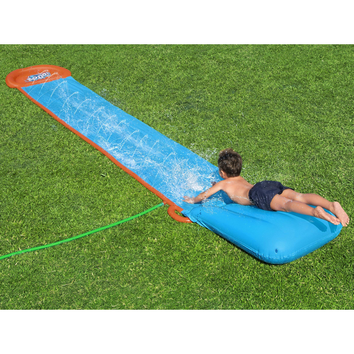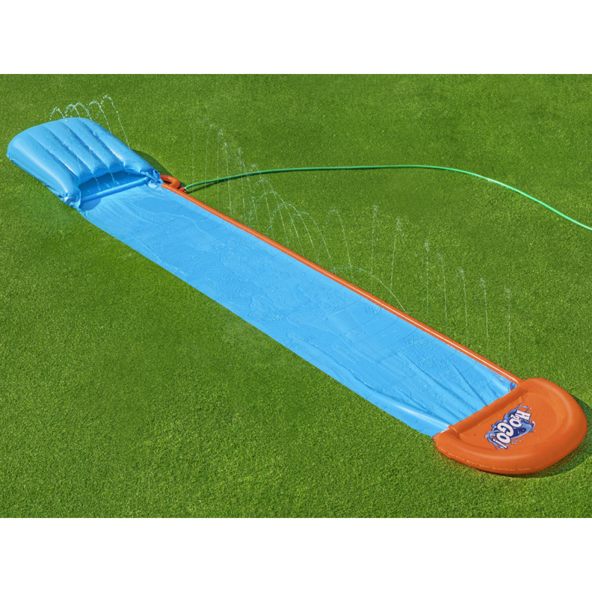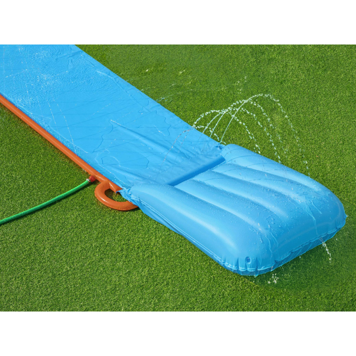 Vandens čiuožykla H2O GO! Bestway yra skirta tiems, kurie mėgsta puikiai leisti laiką lauke. Takas yra drėkinamas purkštukais, kurie veikia prijungus sodo žarną prie specialių tvirtinimų. Vandens purkštukai užtikrina maksimalų slydimą, o vandens srovės palaiko čiuožyklą švarią ir vėsina karštomis dienomis. Dėl sumanios konstrukcijos, tekantis vanduo susirenka pripučiamoje pabaigoje, užtikrindamas minkštą stabdymą su dideliu pliumptelėjimu! Šiuolaikinė konstrukcija ir patvarus, patikrintas medžiagos naudojimas čiuožyklai užtikrina lengvą ir be rūpesčių naudojimą. Tiesiog išskleiskite čiuožyklą ir surenkite smagias varžybas - kas pirmas, tas laimi! Neįtikėtina pramoga garantuota!