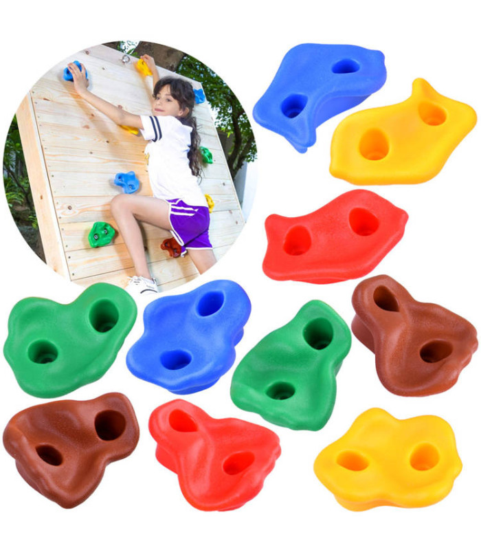 Suteikite savo vaikams galimybę mėgautis laipiojimu su šiuo profesionaliu 10 vienetų laipiojimo akmenų rinkiniu, skirtu asmenims iki 50 kg svorio. Laipiojimas yra puikus laisvalaikio užsiėmimas, kuris teigiamai veikia jauno žmogaus fizinį vystymąsi ir padeda formuoti taisyklingą kūno laikyseną. Kiekvienas akmuo yra suprojektuotas taip, kad būtų galima naudoti įvairius sukibimo būdus, priklausomai nuo tvirtinimo padėties.