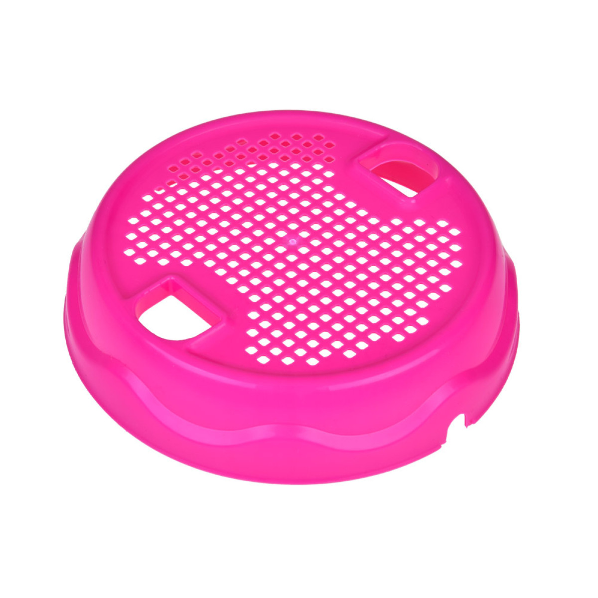 Rinkinys supakuotas į geltoną tinklelį. Jis tiks bet kuriame sode, smėlio dėžėje, žaidimų aikštelėje ar paplūdimyje.