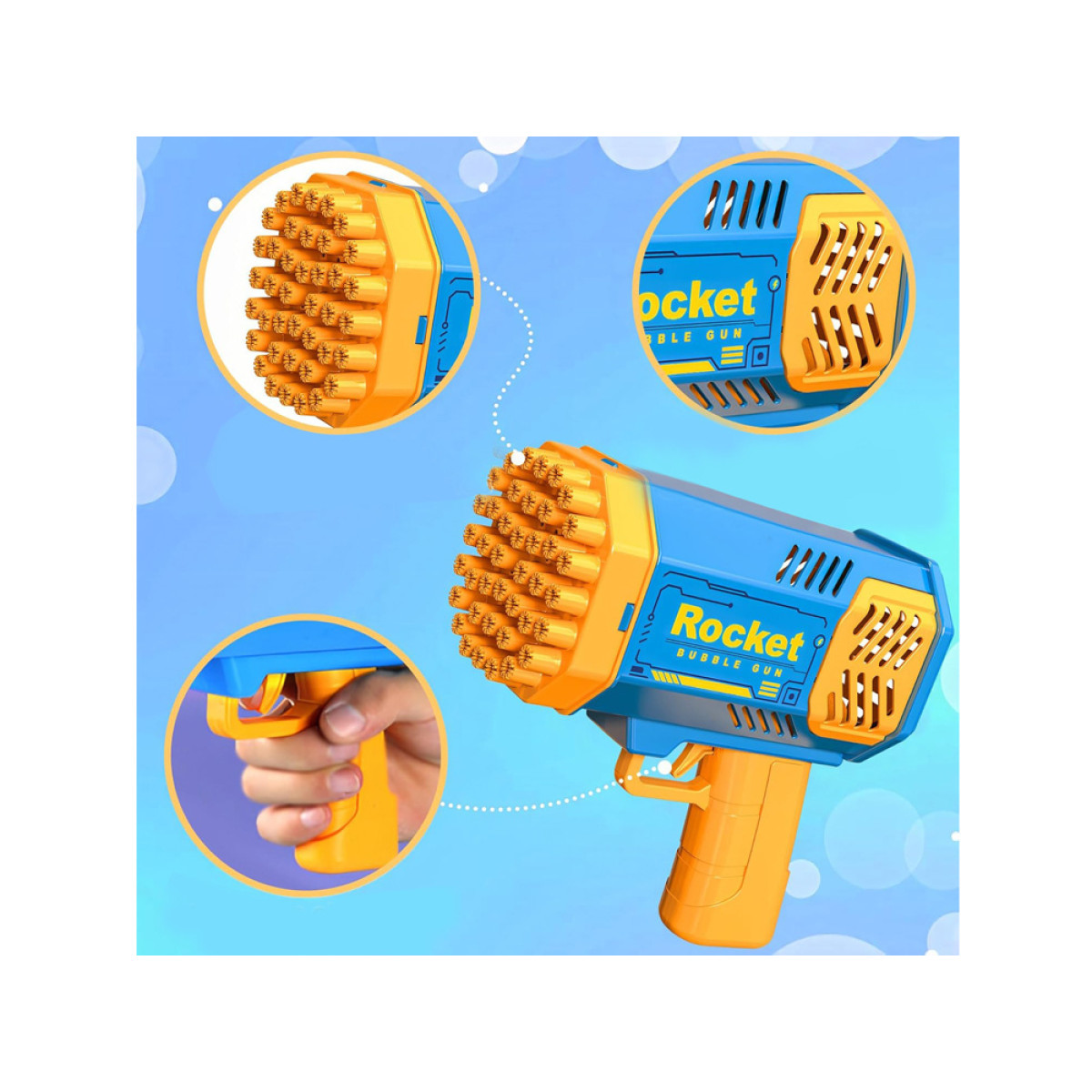 Muilo burbulų pistoletas mėlynos ir geltonos spalvos yra puiki žaislas, galintis vienu metu išleisti net 40 spalvingų, įvairiaspalvių muilo burbulų! Tai suteikia daug džiaugsmo ne tik naudotojui, bet ir visiems stebėtojams.
