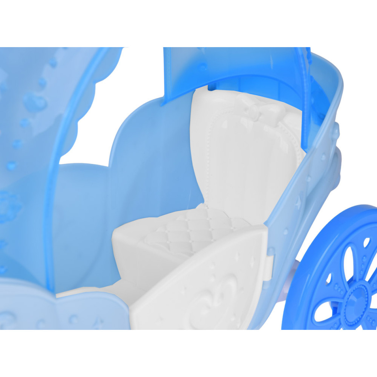 Balta žirgas su šviesia kriauta ir uodega yra aprūpinta dekoratyvine balna ir mėlyna kamanėmis, kurios dera su karieta. Princesės transporto priemonė yra įspūdinga, gausiai dekoruota karieta tikru karališku stiliumi, puikiai tinka pasakų kelionėms magiškoje karalystėje, vizitams pas karališkus draugus ar rūmų damas.