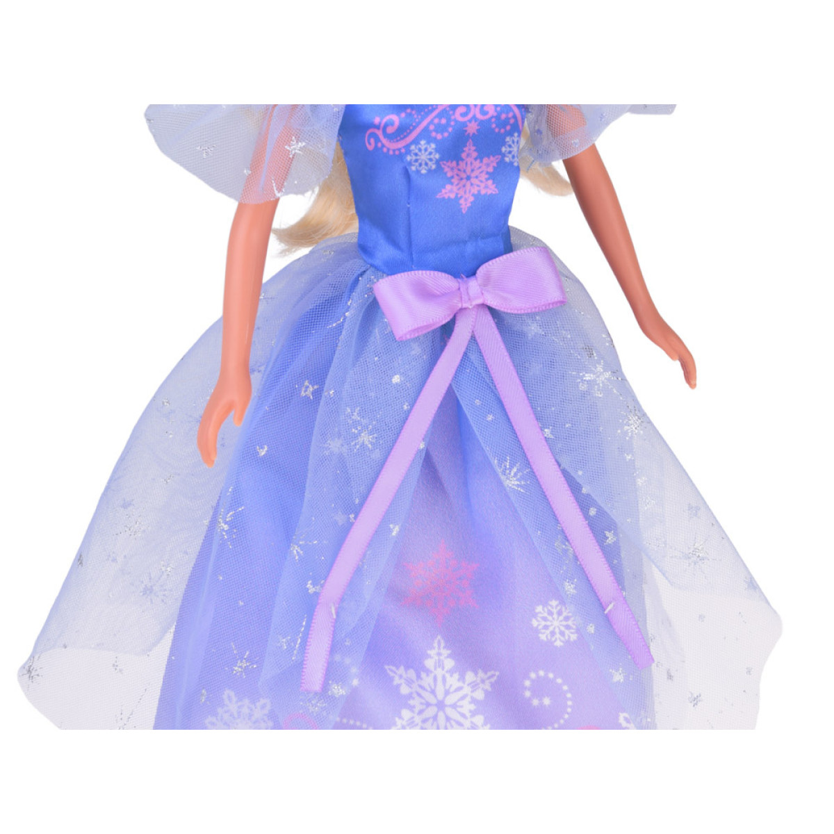 Princesė turi ilgus auksinius plaukus, kuriuos galima šukuoti ir stilizuoti. Ji apsirengusi alyvinės spalvos baline suknele, papuošta blizgančiu tiuliu ir kaspinėliu. Stilių papildo vėrinys ir tiara. Lėlė turi judančias galūnes.