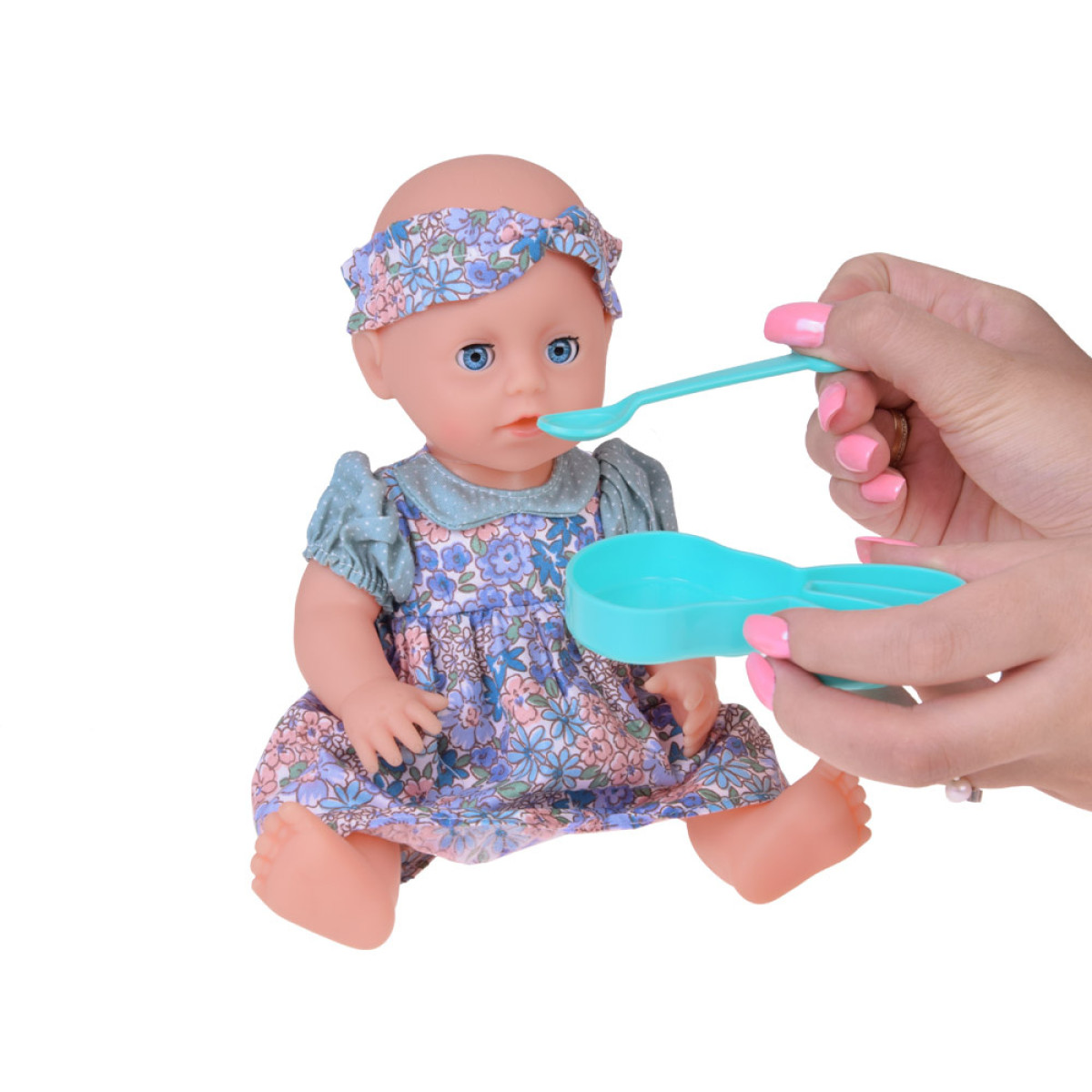 - Jei įpilsime vandens į buteliuką ir įdėsime į kūdikio burną, lėlė pradės svirti.
