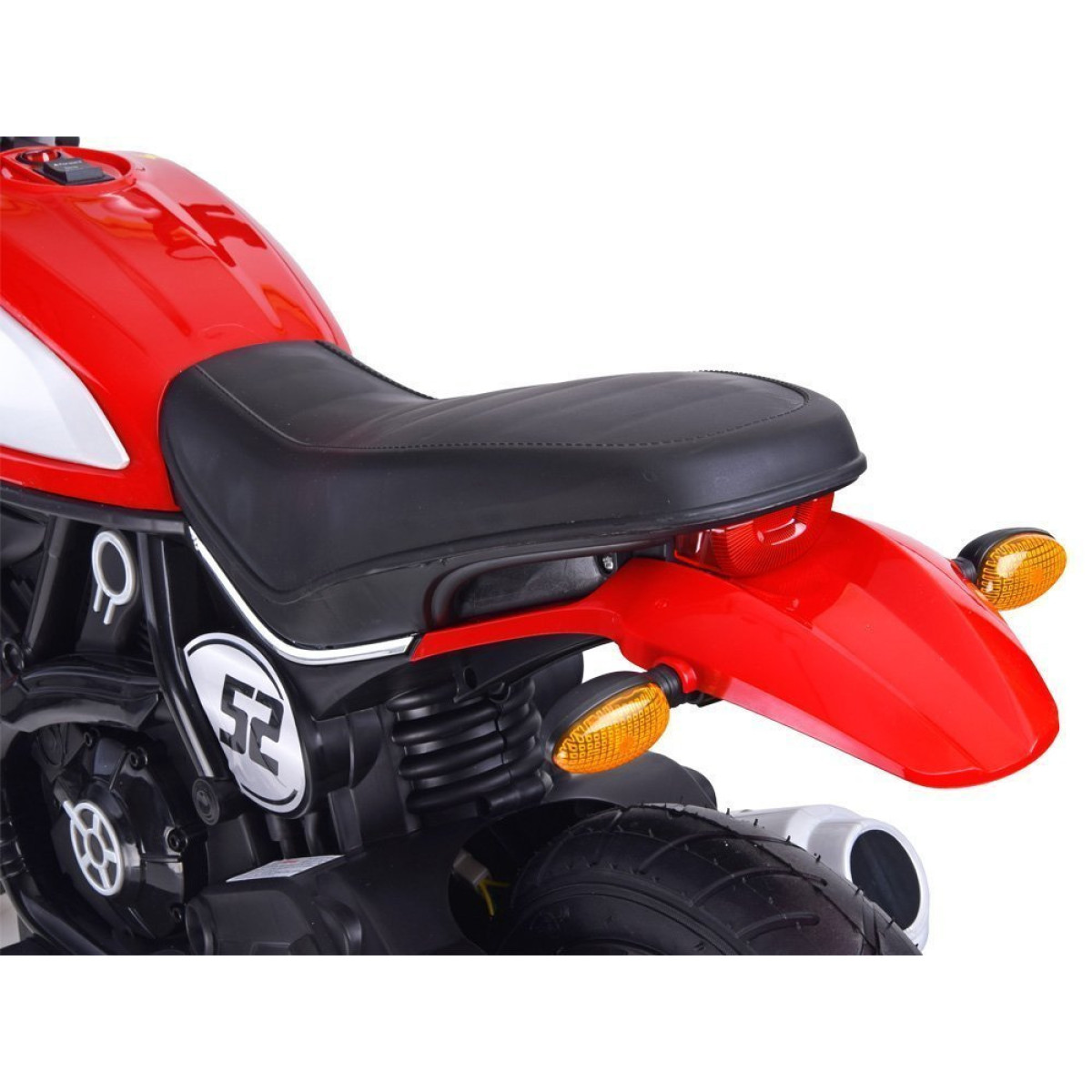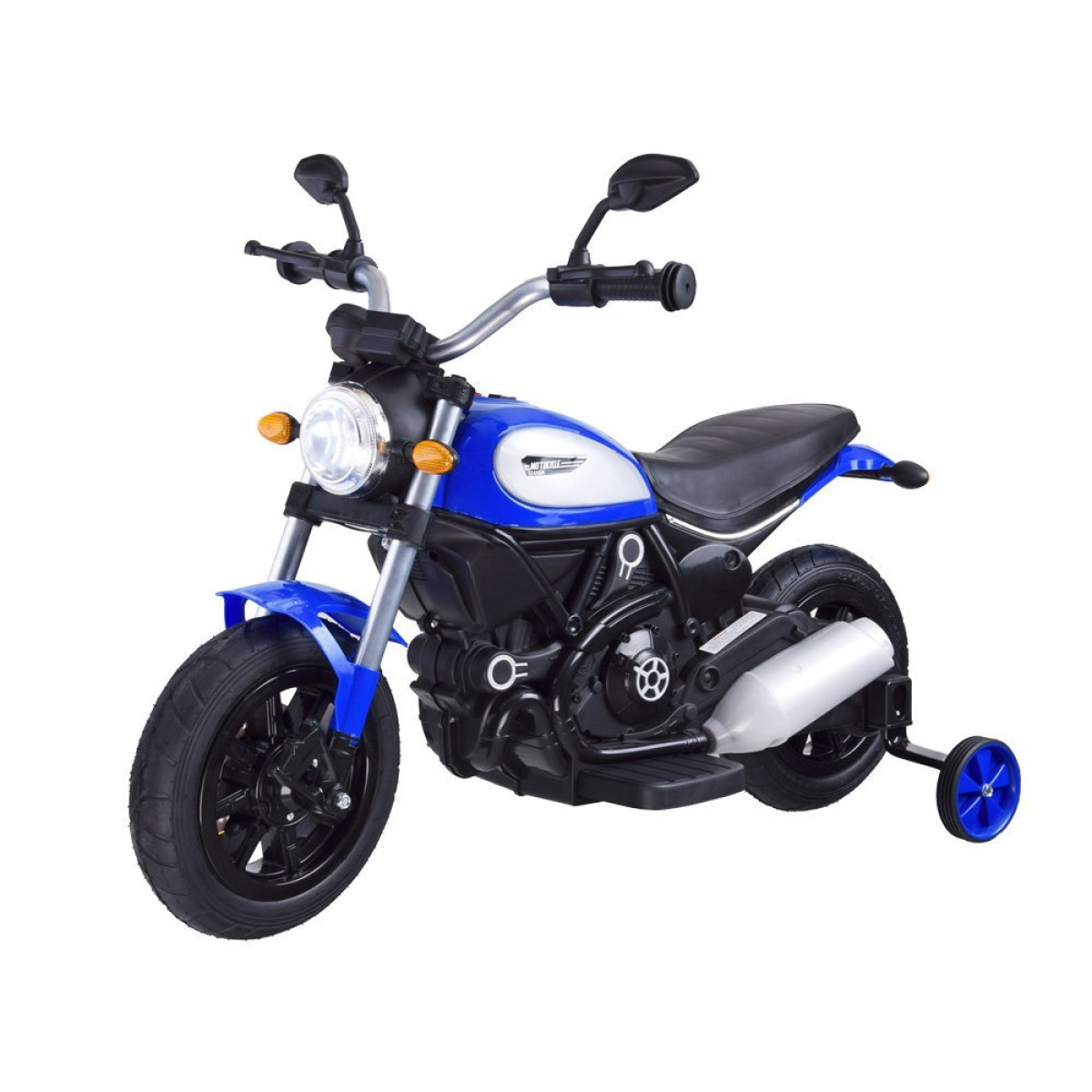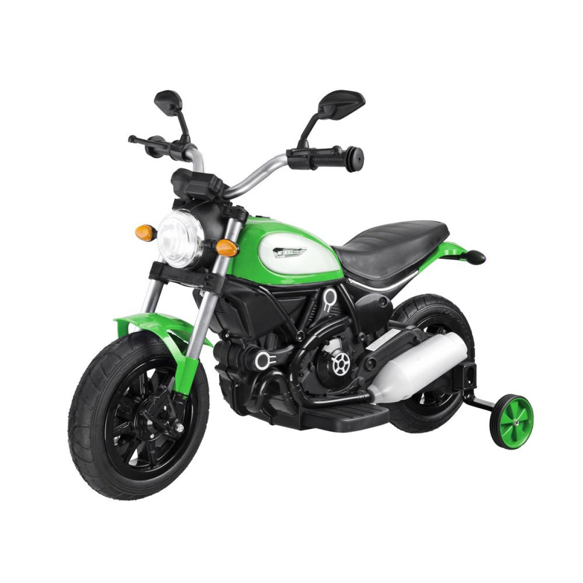 Motociklas yra labai efektingas, o jo privalumas - pumpuojami, guminiai ratai, kurie užtikrina komfortišką važiavimą. Taip pat yra nuimami stabilizaciniai ratukai, kuriuos galima lengvai pritvirtinti arba nuimti. Akumuliatoriaus įkrovos kontrolė leidžia lengvai planuoti išvykas su vaiku. Važiavimo malonumui padidinti motociklas turi muzikos panelę, su kuria vaikas gali klausytis linksmos muzikos arba prijungti savo grojantį įrenginį.