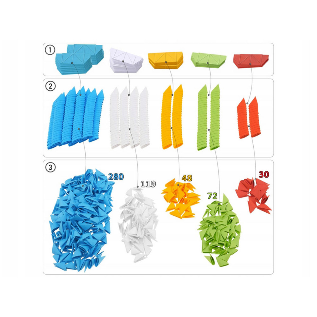 Šis rinkinys susideda iš 549 elementų, skirtų sukurti trimačio pavilo figūrą. Origami teigiamai veikia vaikų vystymąsi, skatina jų mąstymą ir kūrybiškumą. Popieriaus lankstymo menas turi platų terapinį poveikį, kuris taikomas ne tik vaikams, bet ir jaunimui bei suaugusiems. Naudojant patentuotą formą su aiškiai įspausta lankstymo linija, galima atlikti pagrindinį modulį vos trimis judesiais, kuris padės sukurti meno kūrinį. Visi moduliai yra vienodi ir jungiasi tarpusavyje be klijų, formuojant figūrėlę.
