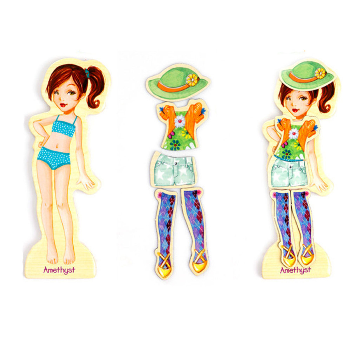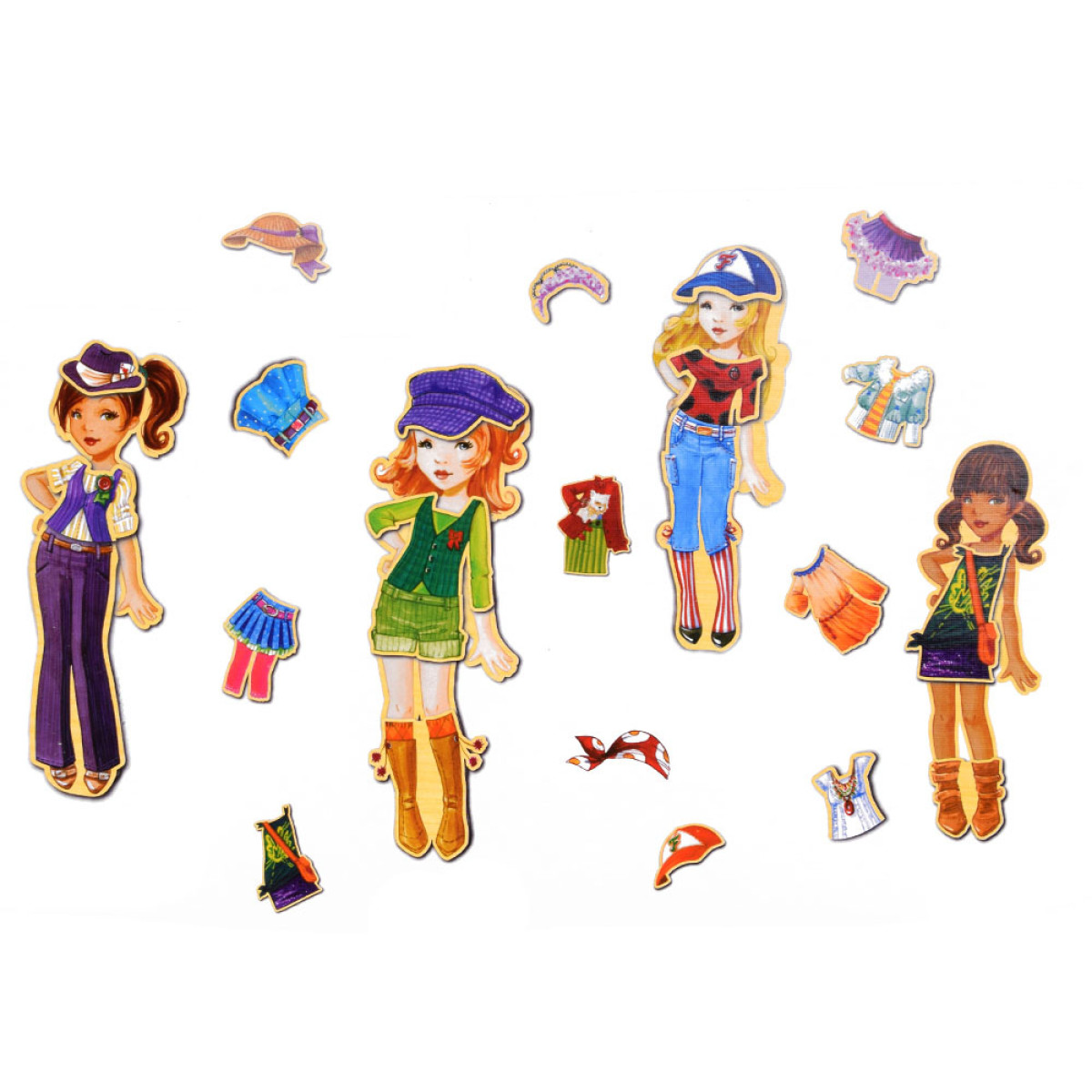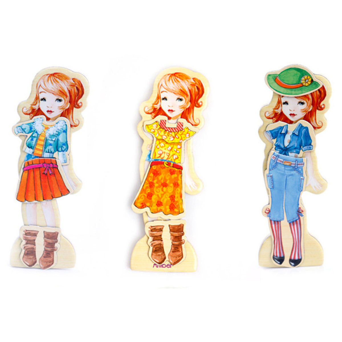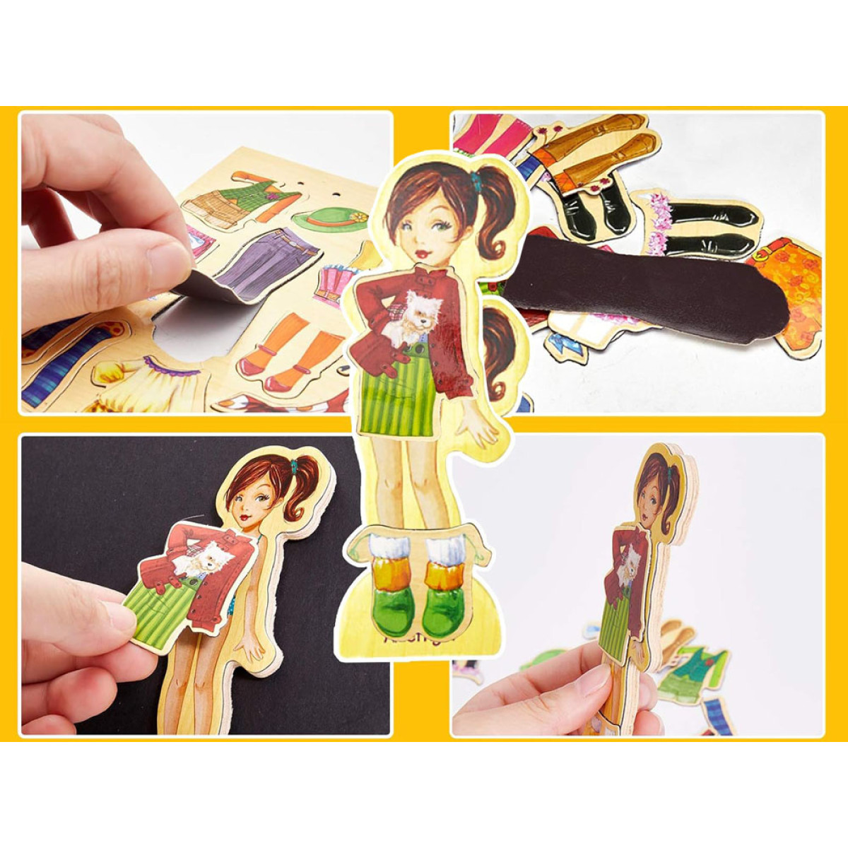 Medinės magnetinės dėlionės Drabužiai Mada stiliai 4 modeliai