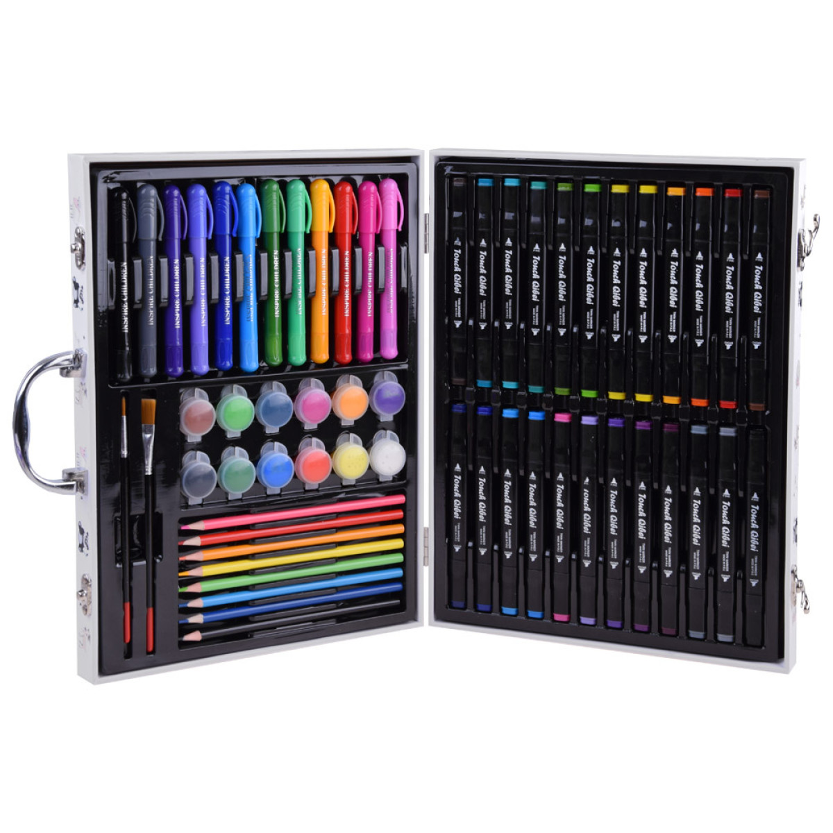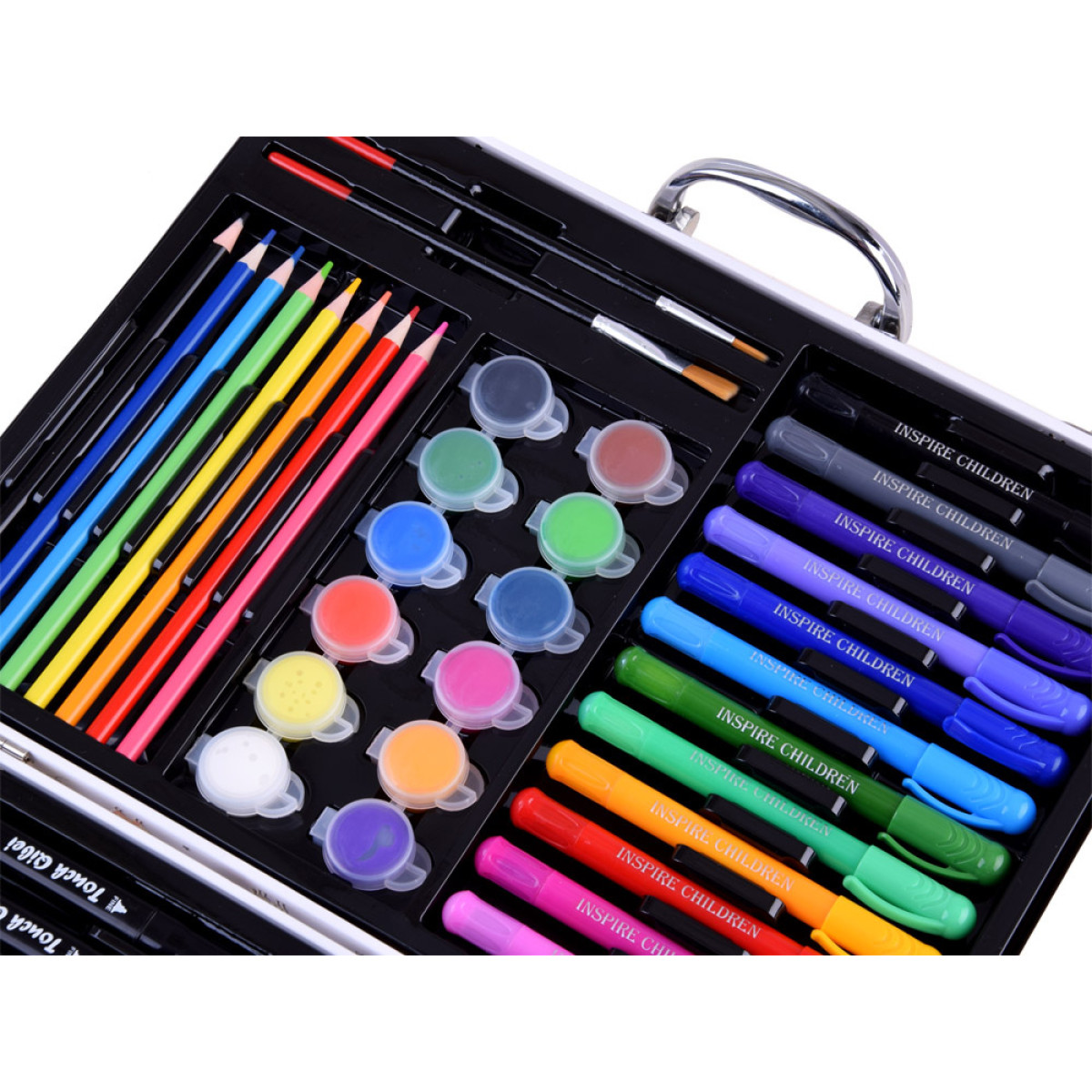 Rinkinys su įvairiaspalviais pieštukais, dažais ir flomasteriais leidžia ilgai užsiimti kūrybiškais darbais. Tai suteiks galimybę kiekvienam mažajam menininkui sukurti nuostabius meno kūrinius, atvirukus mamai, tėčiui, seneliams, portretus ar paprastus piešinius.