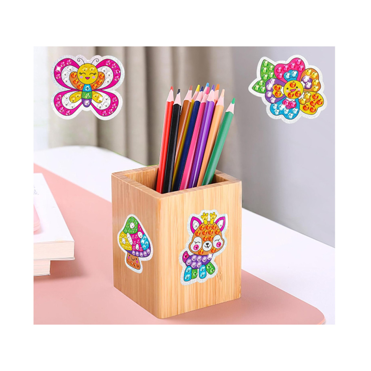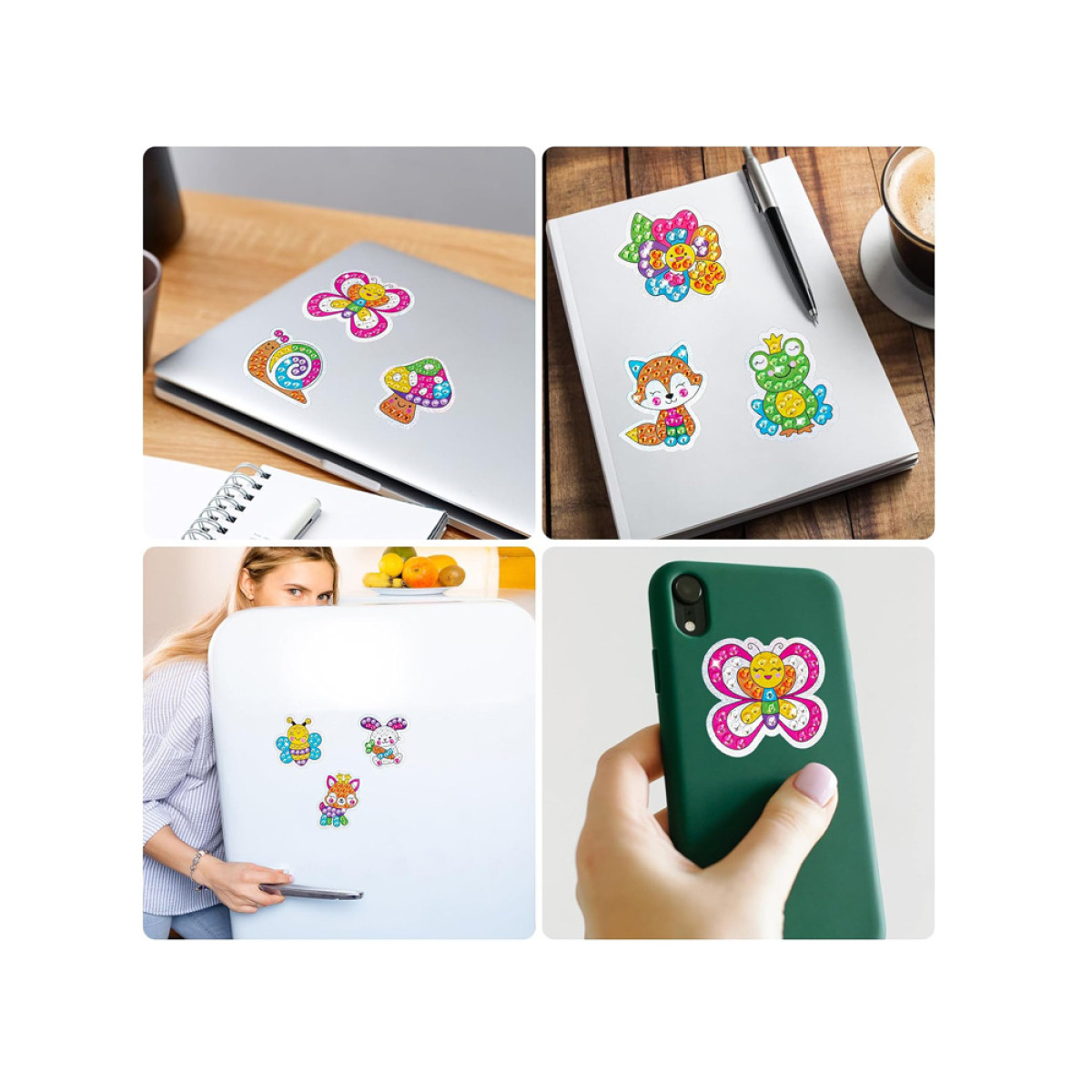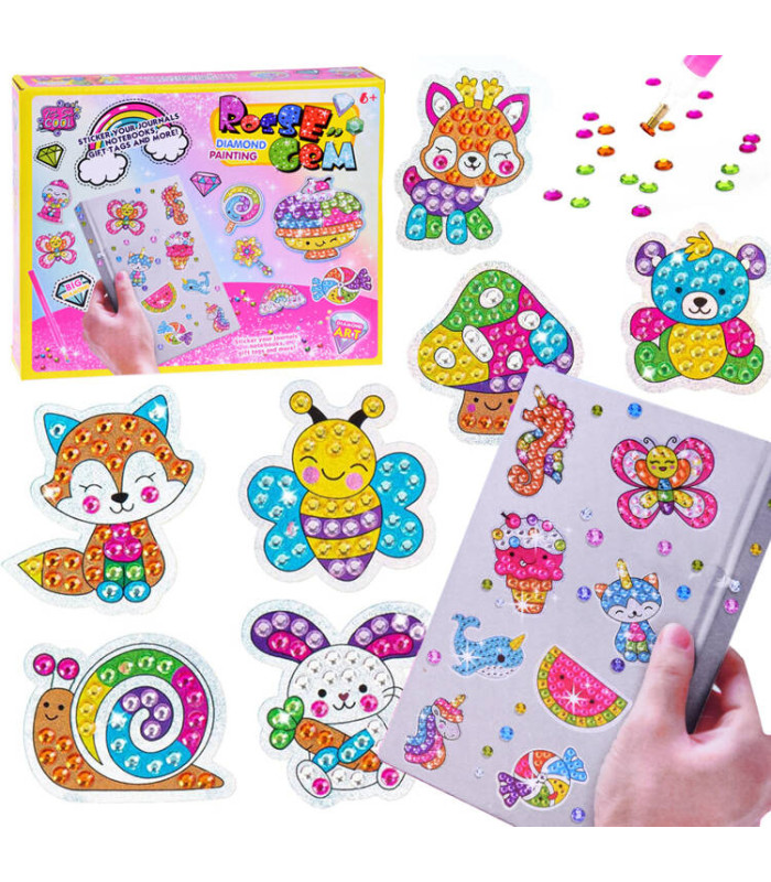 Deimantinis tapybos rinkinys KŪRYBINĖS LIPDUKAI GYVŪNAI yra populiariausia kūrybinė veikla vaikams. Rinkinys leidžia sukurti 12 gražių lipdukų iš spalvingų deimantėlių. Žaidimas susideda iš tinkamų spalvų deimantėlių pasirinkimo ir jų perkėlimo ant lipnios šablono plokštės specialiu rašikliu. Sukūrus elementus, gaunama graži spalvota dekoracija. Naudodami sukurtus nuostabius, blizgančius lipdukus, galite papuošti mėgstamą sąsiuvinį, aplanką, dienoraštį ar nuotraukų albumą.