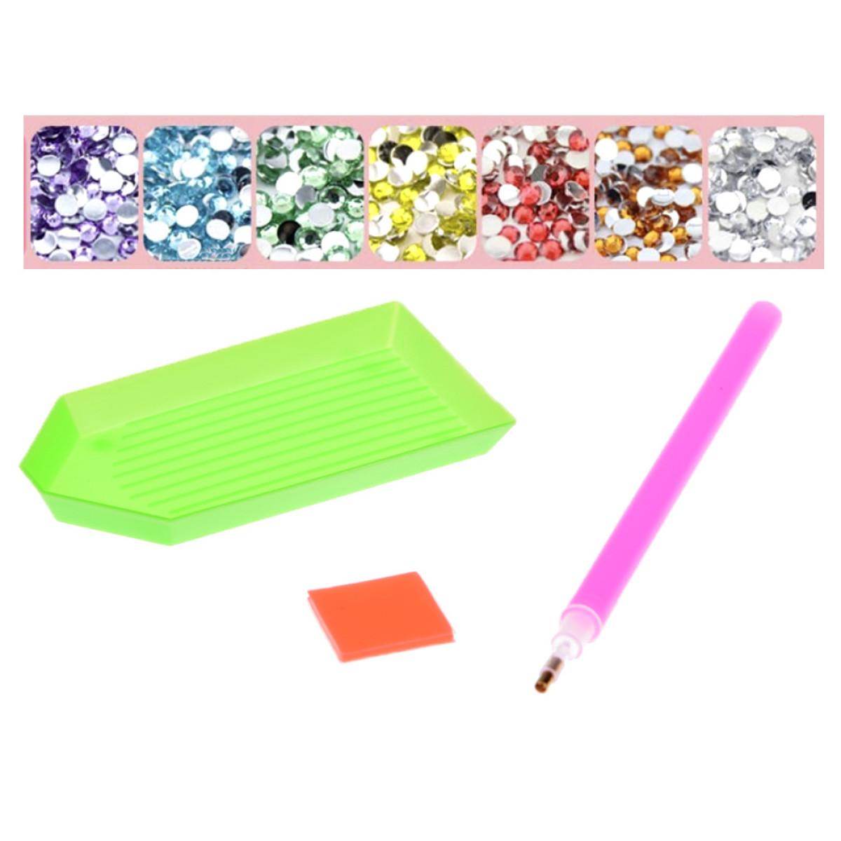 - 7 maišeliai su spalvotais deimantėliais, apie 1000 vnt. (žalias, geltonas, rožinis, mėlynas, violetinis, oranžinis, sidabrinis)