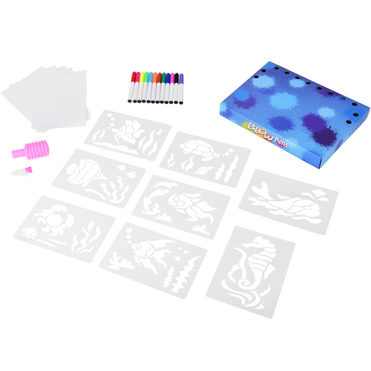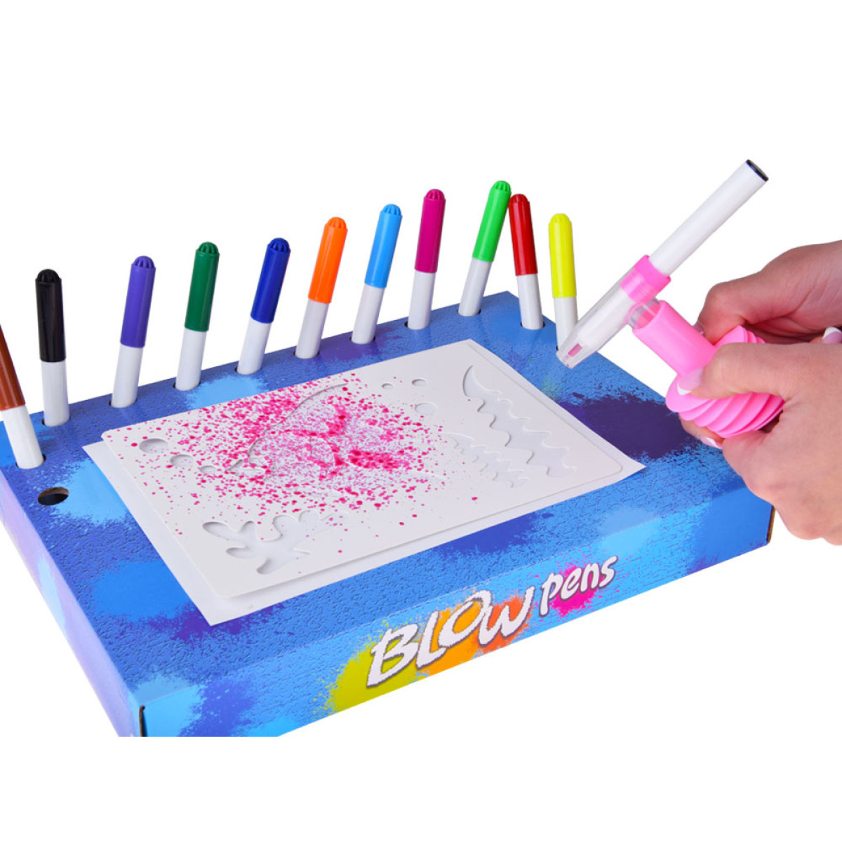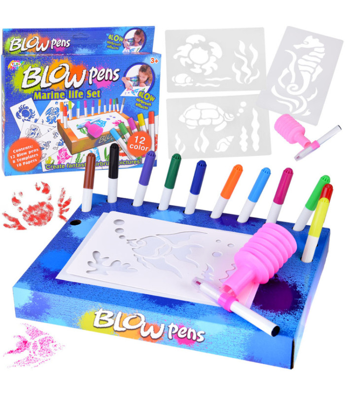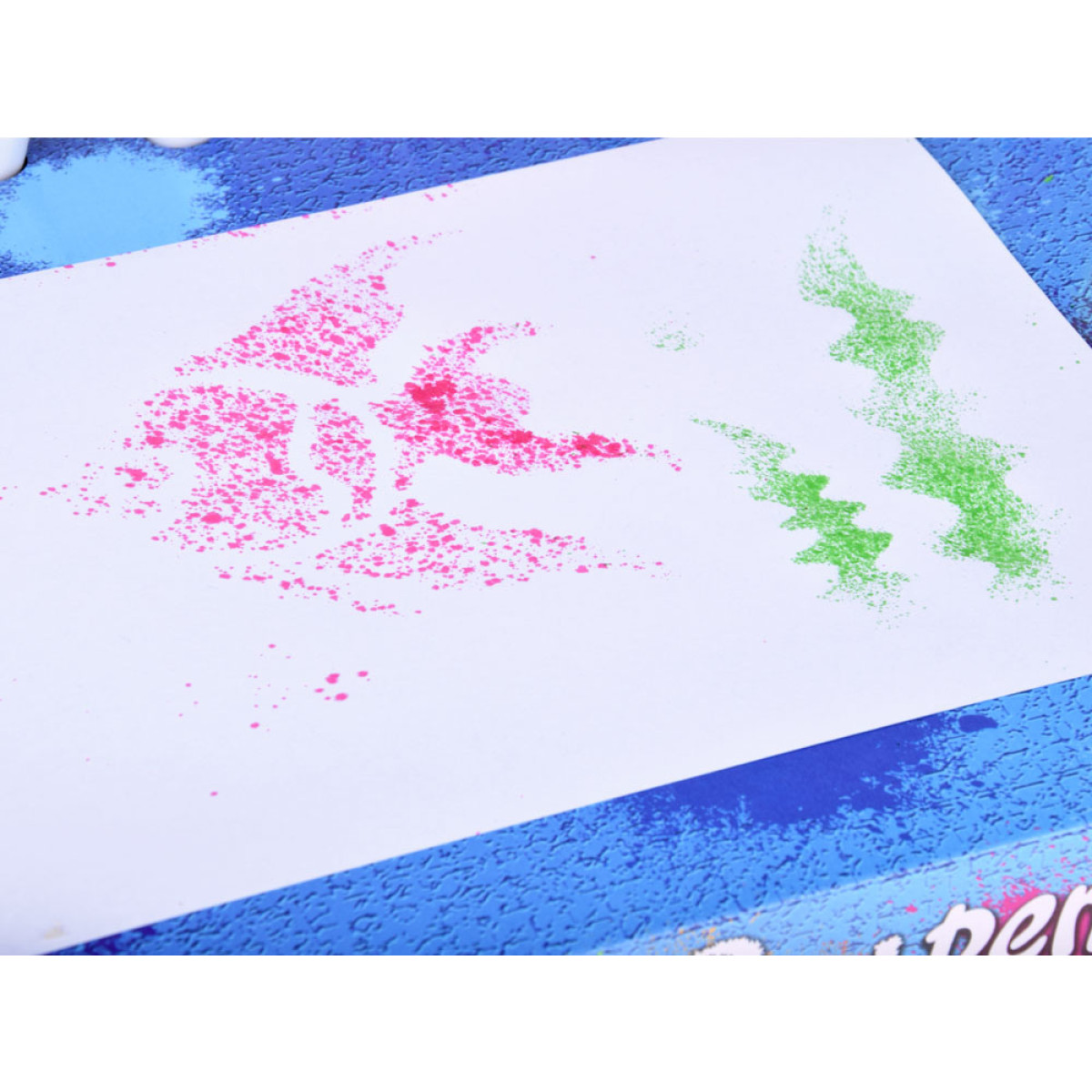 Rinkinį išdėliojame vietoje, kur galima truputį ištepti aplinką - geriausia padengti grindis laikraščiais arba plėvele. Pirmiausia dedame popieriaus lapą, o ant jo pasirinktą trafaretą. Į pompą įdedame flomasterį ir energingai pumpuojame, nukreipdami į trafaretą. Flomasterio lašai sukurs unikalius piešinius. Žaidimo metu spalvas galima keisti, todėl kiekvienas piešinys bus skirtingas. Trafaretai yra daugkartinio naudojimo - po naudojimo reikia leisti jiems išdžiūti ir jie galės būti naudojami vėl.