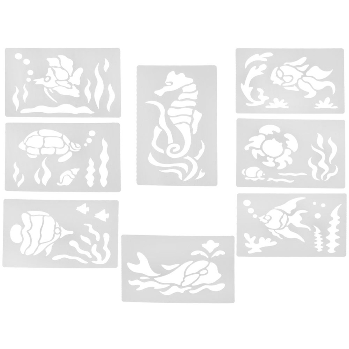 - 8 trafaretai (vėžlys, delfinas, jūros arkliukas, krabas, 4 skirtingos žuvys)