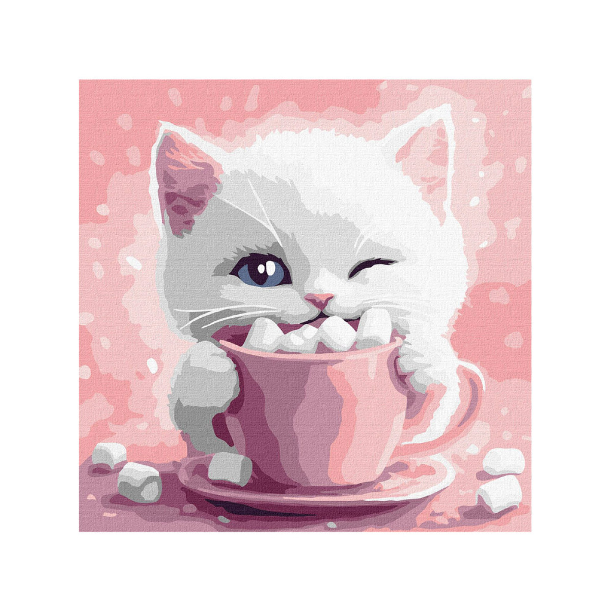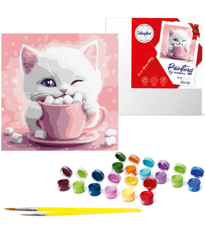 Tapyba ant drobės pagal skaičius „Kakavos katinas” – atsipalaiduokite ir kurkite su vaikais!