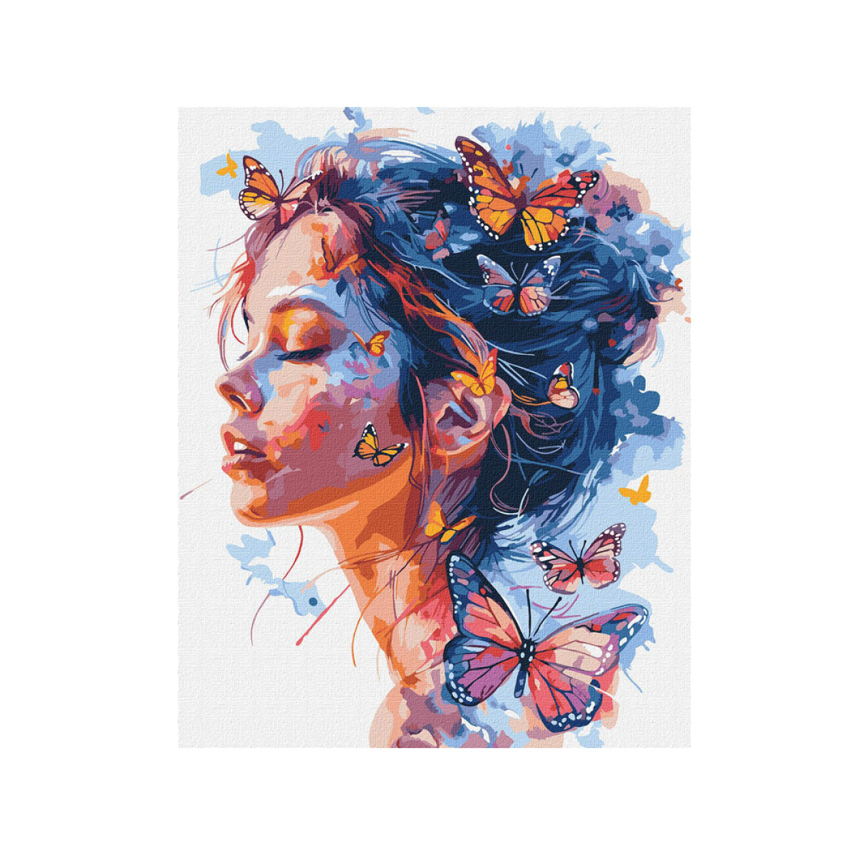 Tapyba pagal skaičius ant drobės su mediniu rėmu "Mergina ir drugeliai"