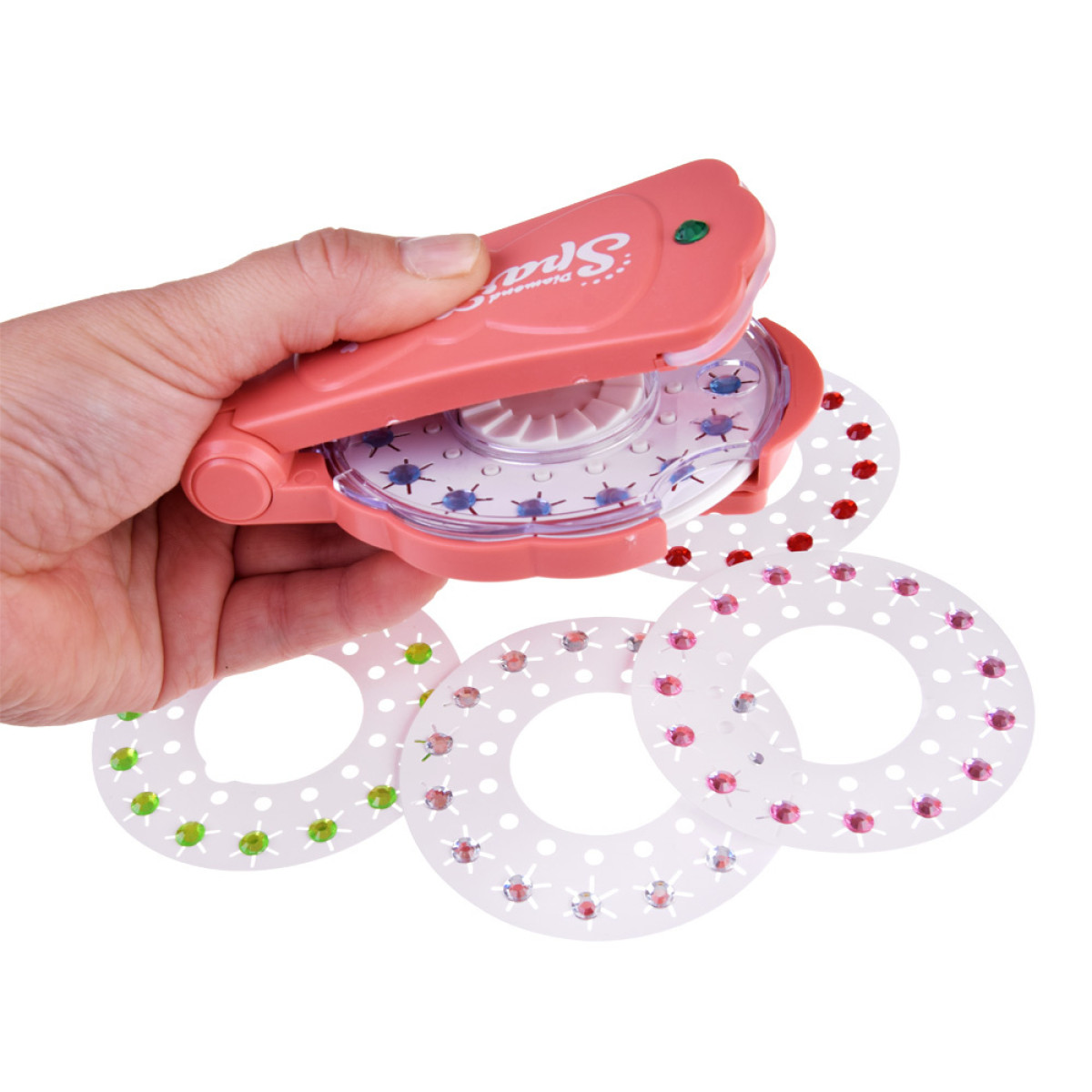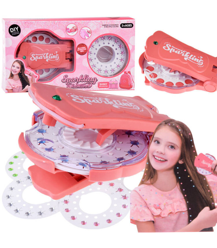 Šis įrenginys su spalvotais kristalais yra puiki priemonė mažosioms stilistėms ir mados kūrėjoms. Jis puikiai tinka plaukų, rūbų, rankinių ir įvairių aksesuarų dekoravimui.