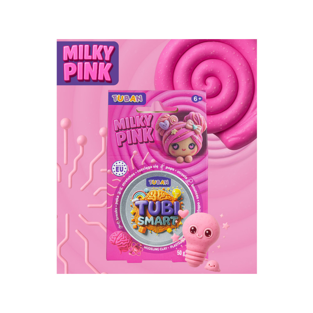 Tubi Smart plastilinas Milky Pink yra žaislas, kuris niekada nenuobodžiauja. Rožinė masė su baltais trupiniais yra puikus pasirinkimas vaikams, mėgstantiems kūrybišką ir sensorinį žaidimą. Elastinga, minkšta ir maloni liesti – ji gali būti tempiama, trūkstama, atšokanti ir šokinėjanti, suteikianti daugybę eksperimentavimo galimybių. Vaikas gali ją minkyti, smulkinti, formuoti į įvairias formas ir atrasti visiškai naujus žaidimo būdus, lavindamas savo kūrybiškumą ir erdvinę vaizduotę.
