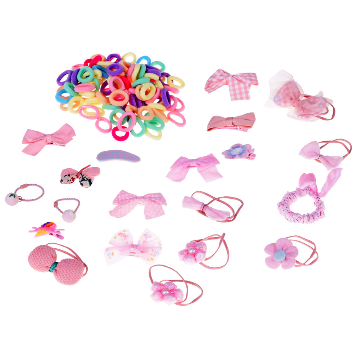 - 10 dekoratyvinių gumelių plaukams (su gėlyte, kaspinėliu, pompomu, gumelė su ausytėmis)