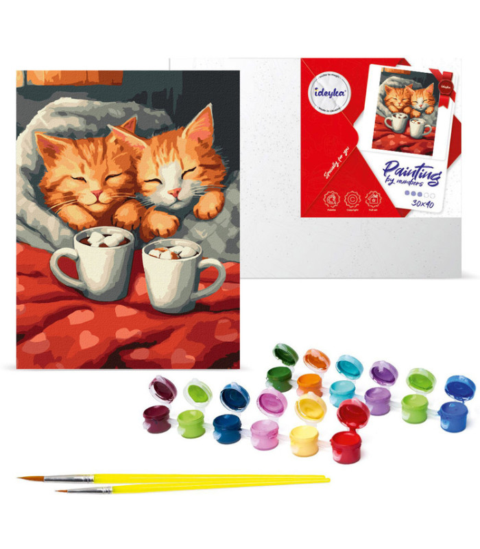 Dažymas ant drobės pagal skaičius „Įsimylėję katinai“ – atsipalaidavimas ir kūrybiškas užsiėmimas paaugliams!