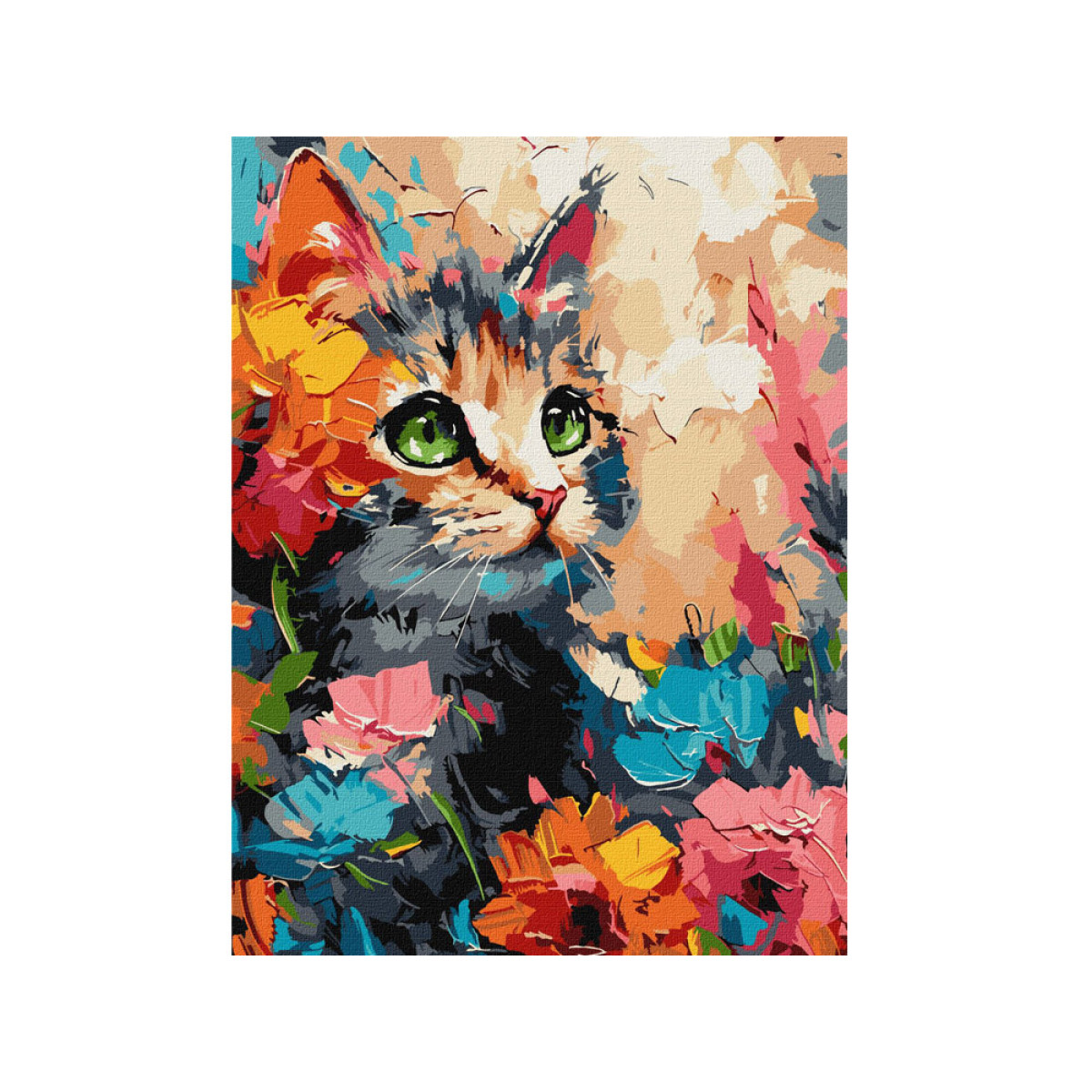 - Paruošta dažymui drobė su elegantišku motyvu „Pūkotas katinas“, padalinta į numeriais pažymėtus laukus