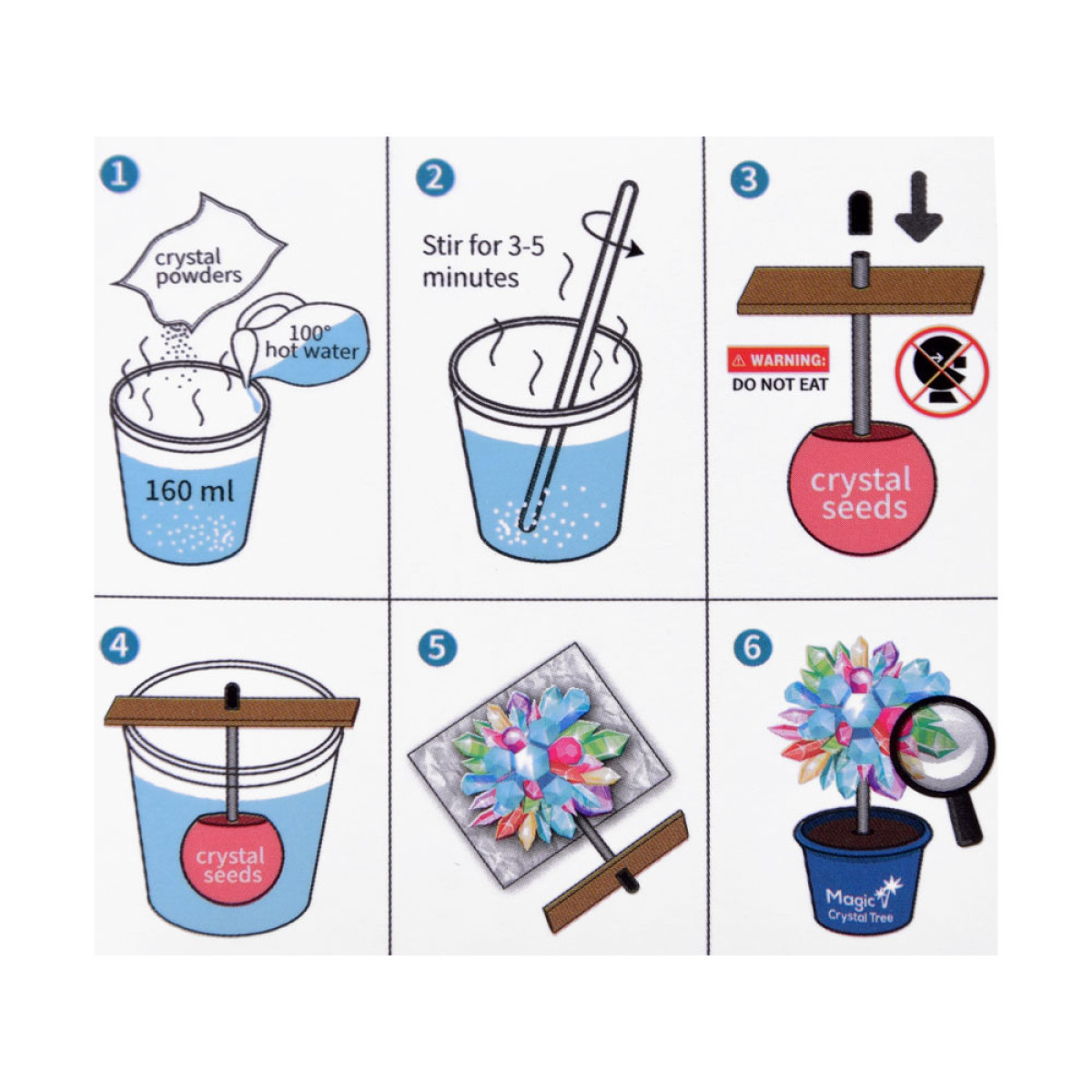 Kūrybinis rinkinys, kuriame vaikas gali atlikti savo pirmąjį eksperimentą ir užauginti kristalą.
