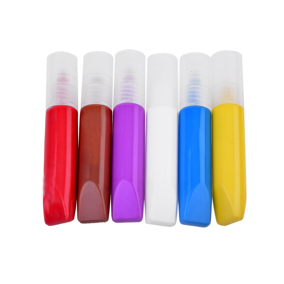 - 6 dažus: violetinė, ruda, balta, mėlyna, geltona, raudona