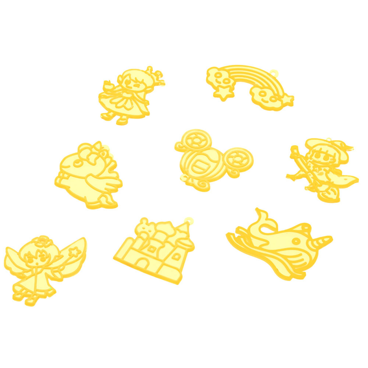 - 8 guminius šablonus: fėja, ragana, princesė, vaivorykštė, vienaragis, pilis, narvalas, karieta