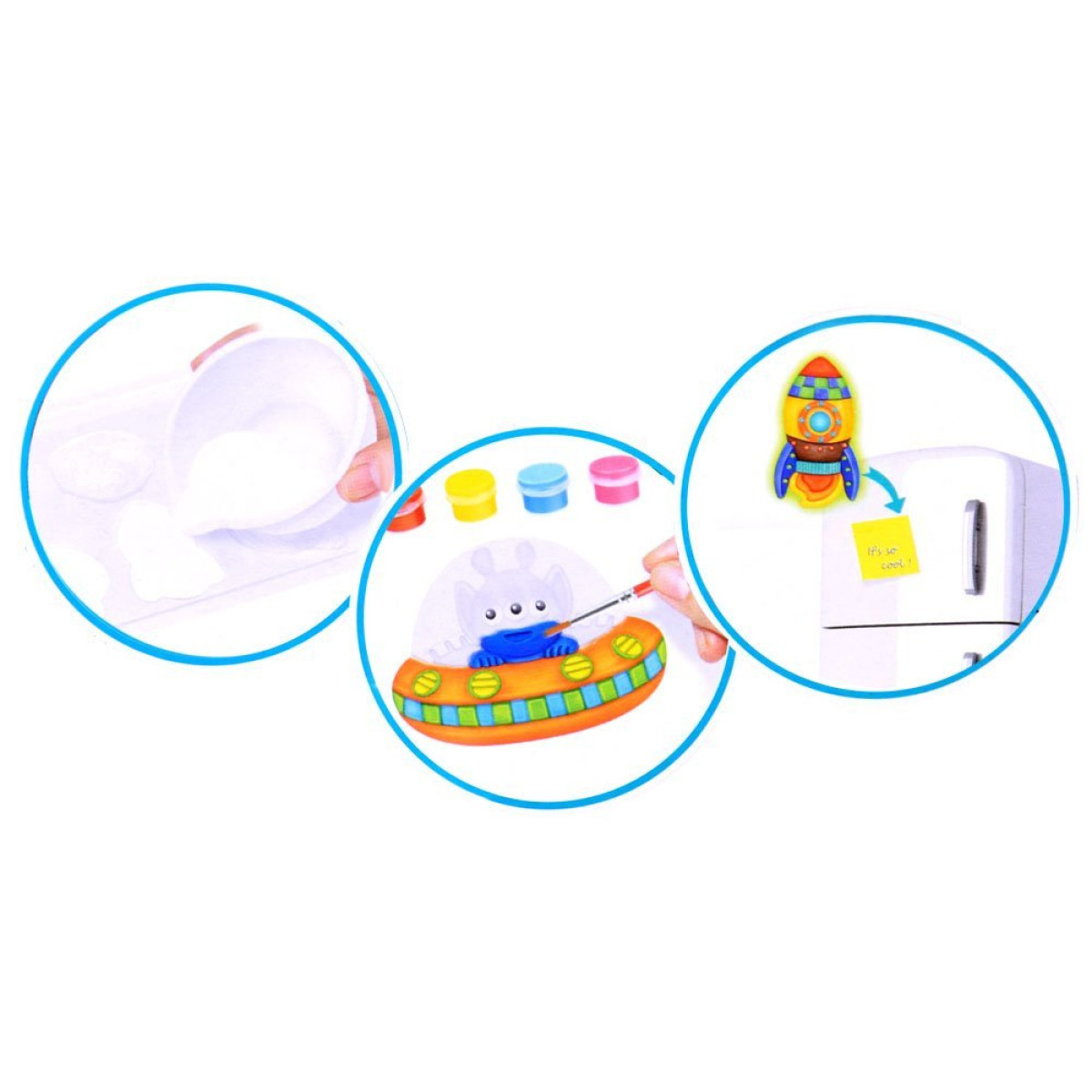 Unikalumas: Tai puikus rinkinys kūrybingam laisvalaikiui, leidžiantis kurti kosminius šaldytuvo magnetus. Vaikas turi savarankiškai paruošti liejinį ir jį nuspalvinti pagal savo skonį.