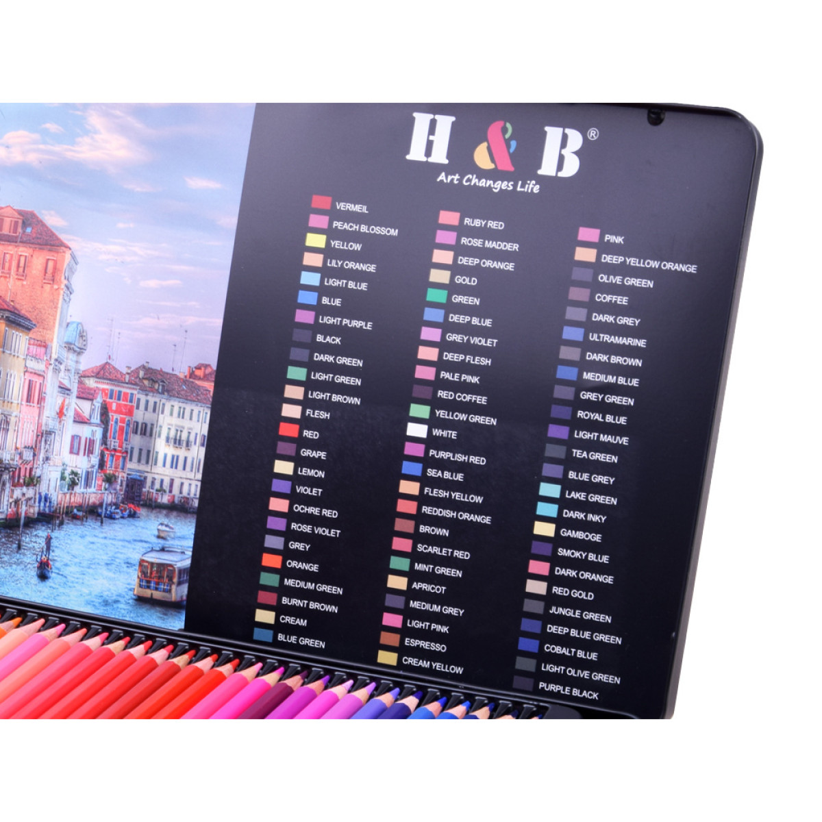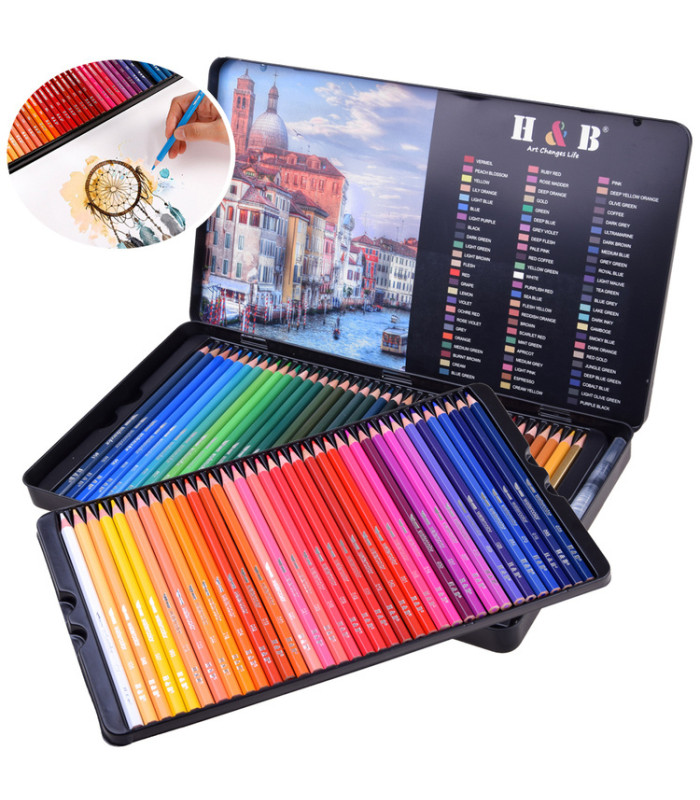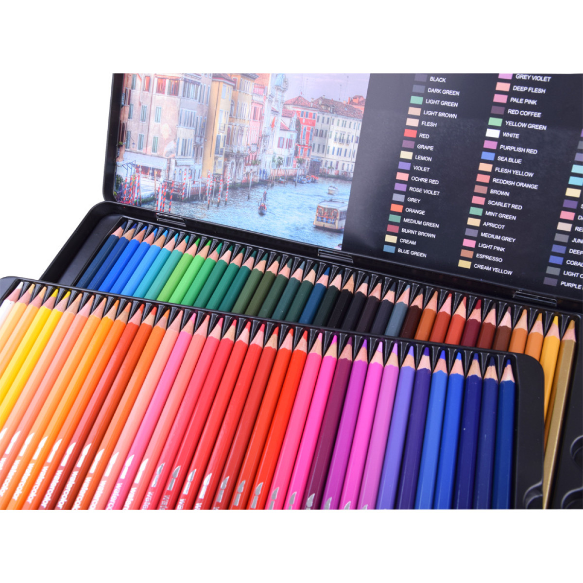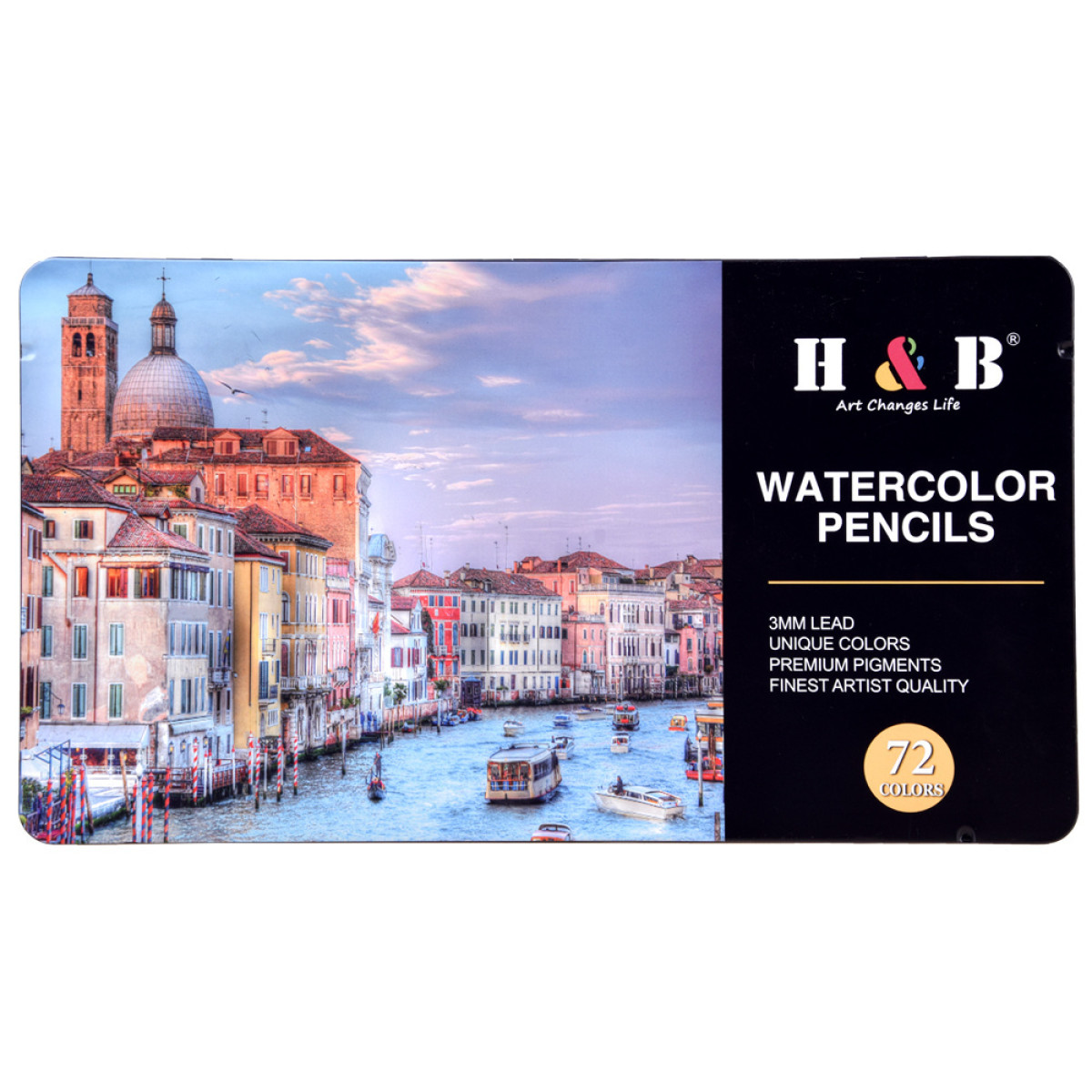 Akvareliniai pieštukai 72 spalvų rinkinys su metaliniu dėklu
