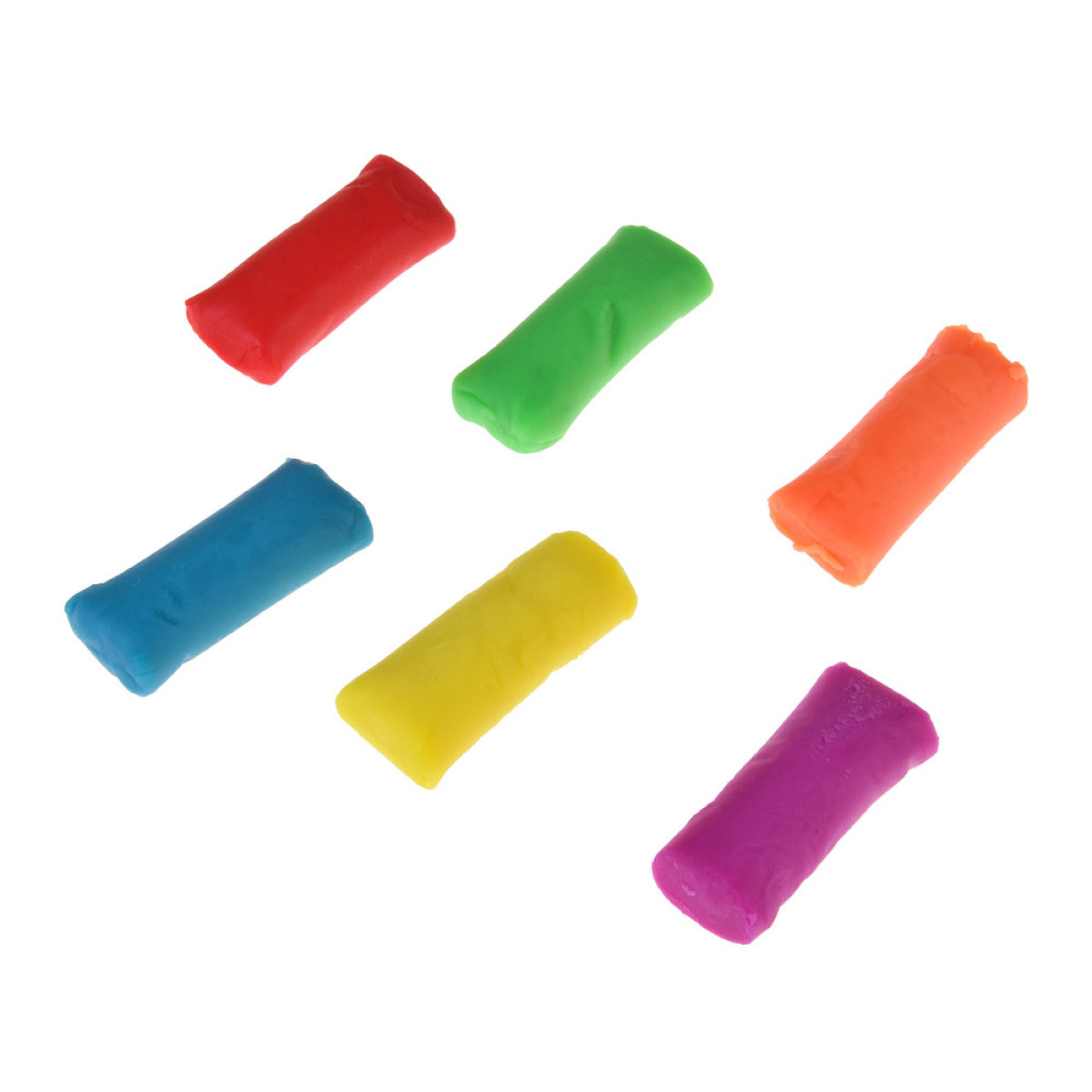 • 6 spalvotos plastilino masės: žalia, mėlyna, raudona, violetinė, geltona, oranžinė