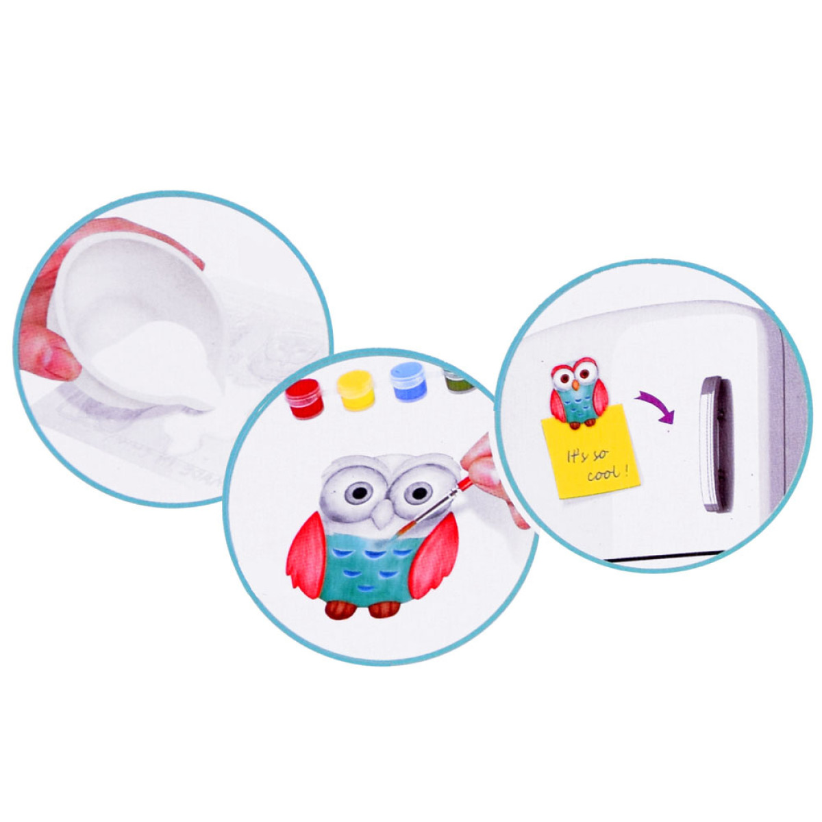 Vaikas turi pats paruošti gipsinį atspaudą ir jį nudažyti pagal savo norus. Rinkinys leidžia sukurti 6 skirtingus magnetus.