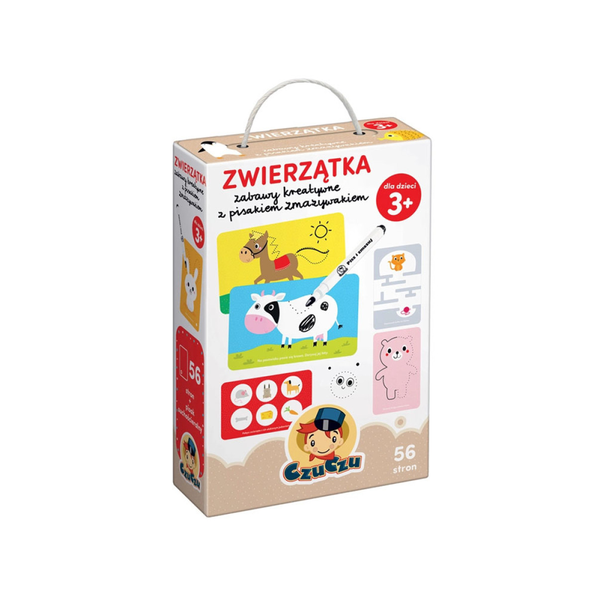 CzuCzu Žvėreliai kūrybiniai užsiėmimai su rašikliu trintuku - tai knygelė skirta daugkartiniam piešimui ir trynimui. Tai daugybė kūrybinių užsiėmimų, kurie skatina vaikų kūrybinę išraišką. Linksmi žvėreliai ir spalvingos iliustracijos skatina vaikus kūrybiškai reikštis. Iliustracijos ir forma pritaikyta vaikų amžiui.