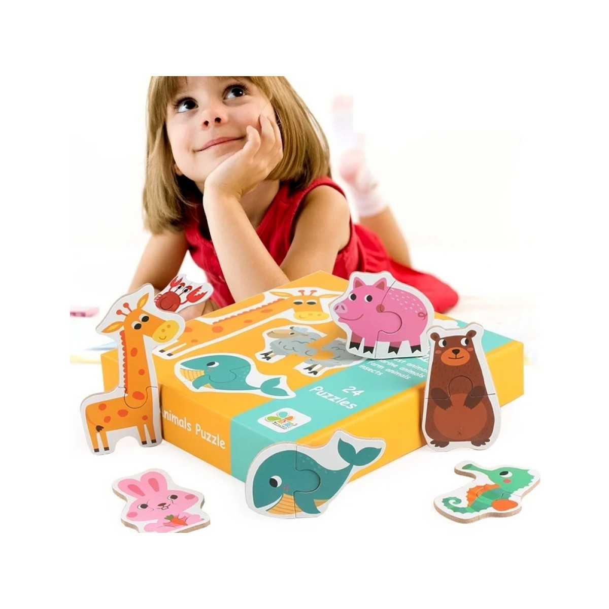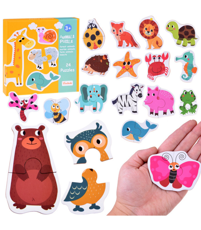 Fantastiškas, spalvingas dėlionių rinkinys su gyvūnais yra puiki dovana vaikams nuo 3 metų. Dėlionės susideda iš dviejų dalių, leidžiančių sukurti konkretaus gyvūno paveikslėlį. Papildomai, dėlionės apačioje yra užrašai anglų ir kinų kalbomis, todėl vaikai žaisdami gali mokytis gyvūnų pavadinimų užsienio kalbomis. Dėlionės yra idealios pradedantiesiems dėlionių entuziastams. Dėlionių dėliojimas lavina vaizduotę, erdvinį mąstymą, moko kantrybės ir loginio mąstymo, taip pat padeda lavinti smulkiąją motoriką.