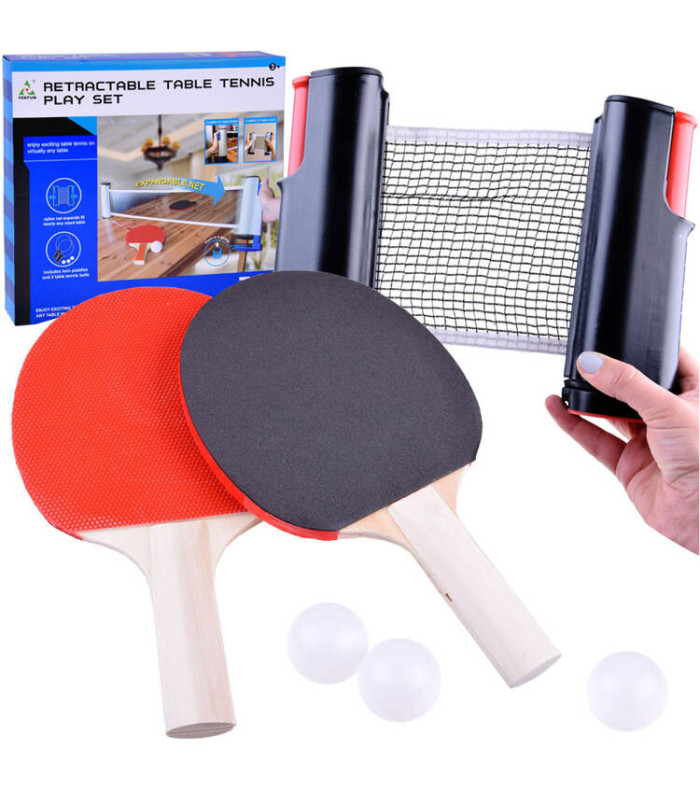 Puikus sprendimas aktyviems žmonėms, mėgstantiems turėti po ranka įvairius modernius sprendimus. Šį kompaktišką rinkinį galite pasiimti su savimi visur ir naudotis bet kada. Pakanka turėti stalo paviršių, kad galėtumėte pradėti žaisti. Rinkinyje yra reguliuojama tinklas, dvi raketės ir trys kamuoliukai.