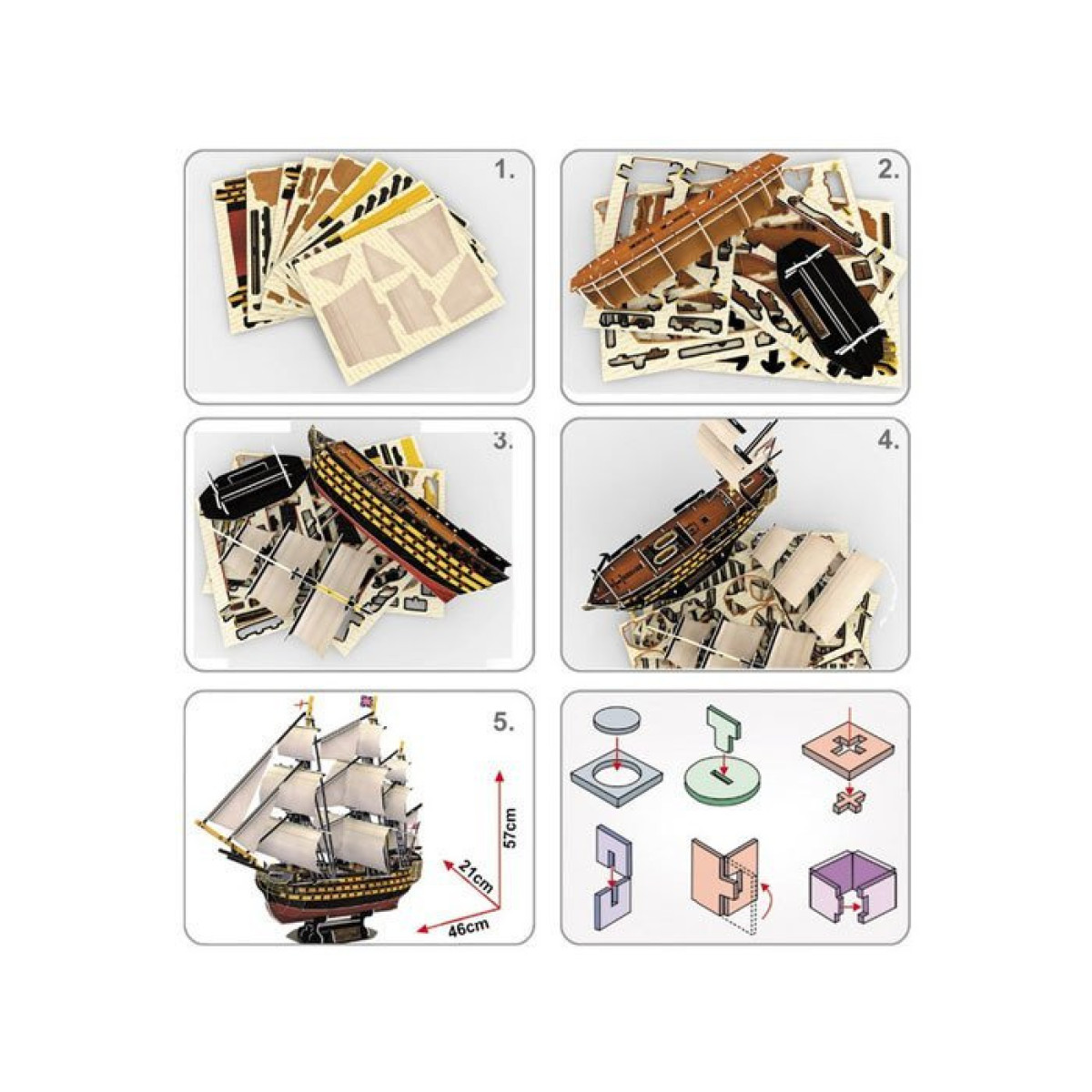 Nuostabus 3D dėlionės rinkinys, leidžiantis sukurti gražų laivą. HMS Victory – britų karinio jūrų laivyno burinis linijinis laivas, pastatytas 1759-65 metais. Tai puikus užsiėmimas dėlionių entuziastams ir modeliuotojams. Surinkdami laivą laviname erdvinę vaizduotę, galime iš arčiau pamatyti daugybę detalių. Užsiėmimas suteikia daug pasitenkinimo, moko kantrybės ir reikalauja preciziškumo bei švelnumo.
