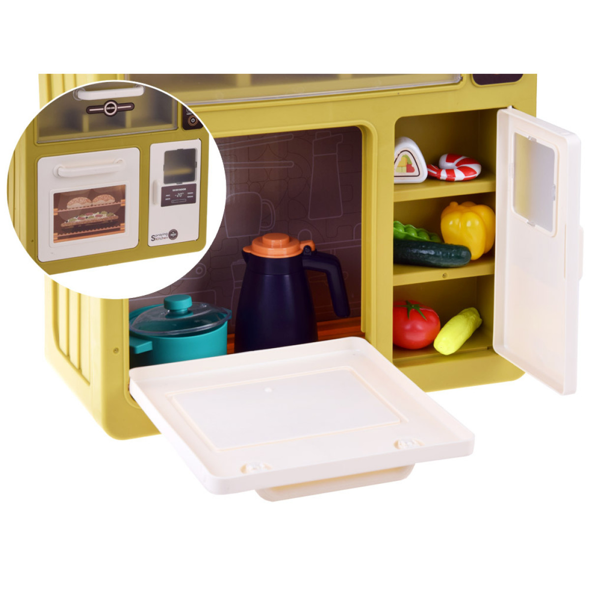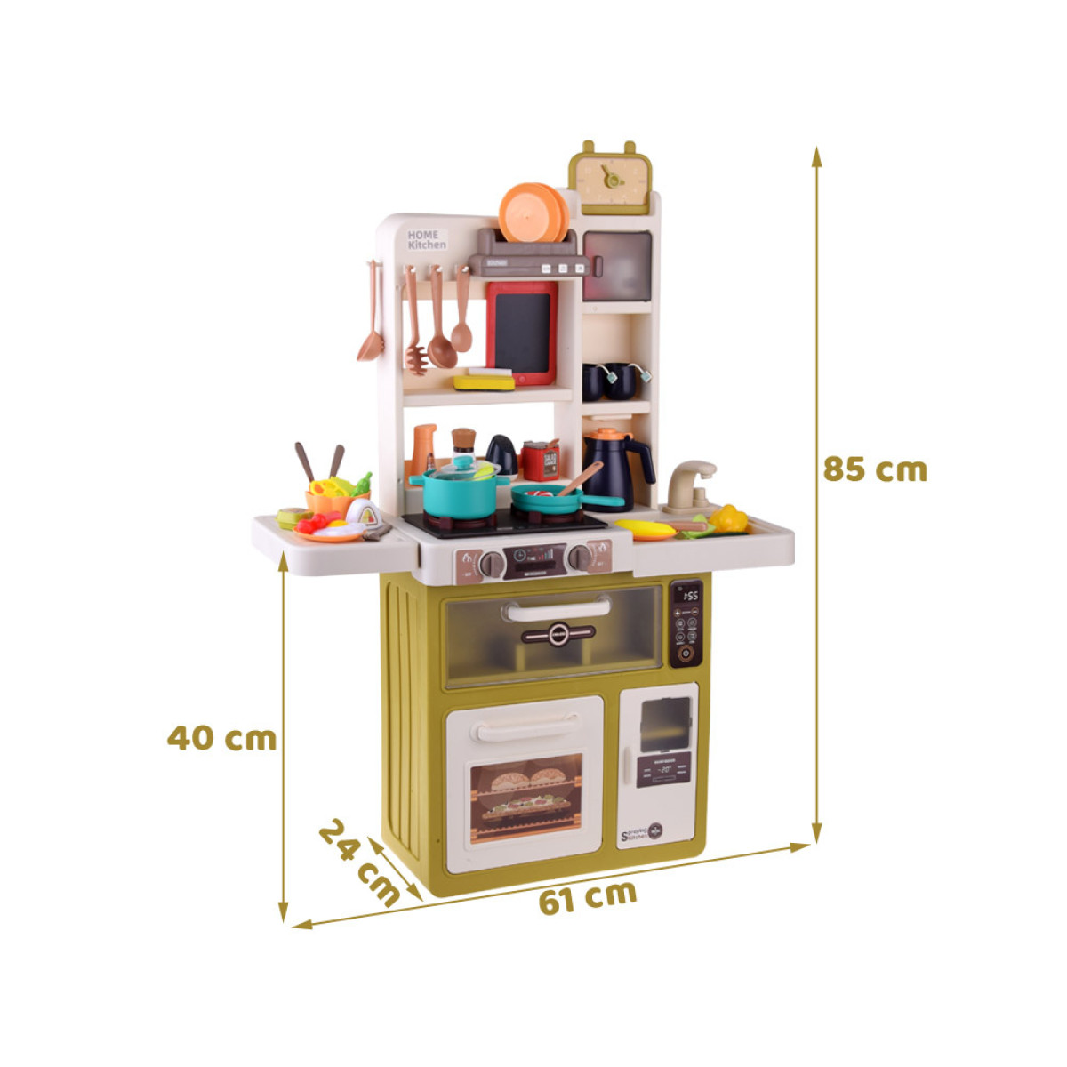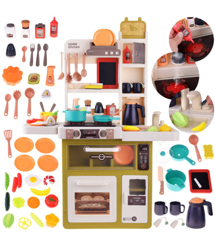 Fantastiška virtuvė vaikams kremiškai žalios spalvos su 49 priedais ir garų efektu – tai daugelio mažų virėjų svajonės išsipildymas. Kiekvienam vaikui patinka žaisti su virtuvės priedais, imituojant maisto ruošimą. Šis rinkinys padės vaikui paruošti ne vieną įmantrų patiekalą arba surengti puotą savo pliušiniams draugams, lėlėms, mamai, tėčiui, broliams ar seserims, seneliams ar draugams.