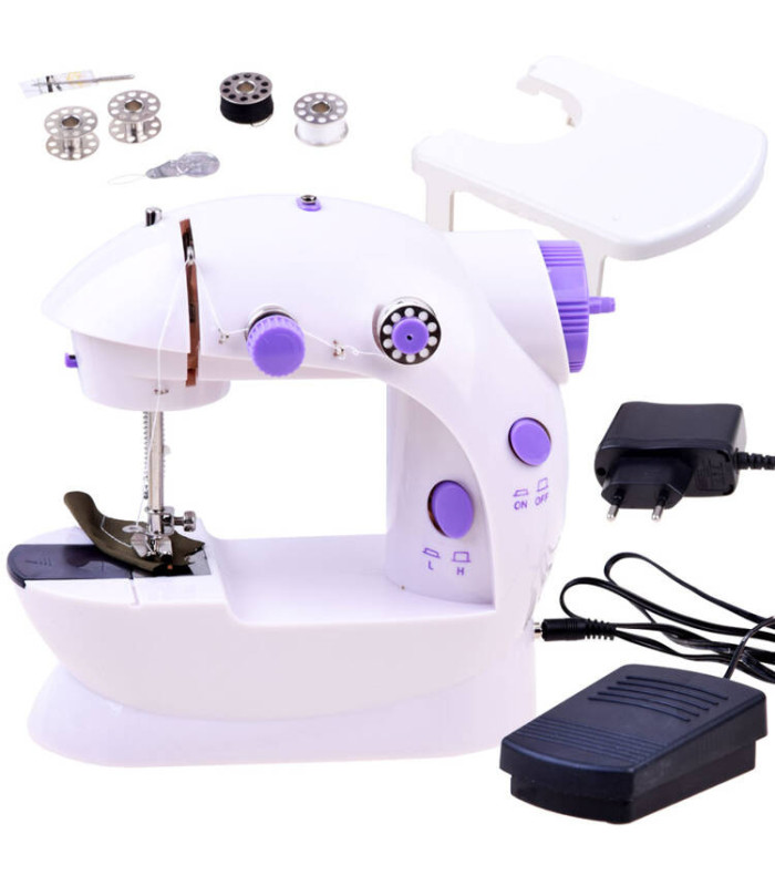Mini siuvimo mašina yra idealus pasirinkimas bet kurioje avarinėje situacijoje. Su šia mašina galima lengvai ir greitai atlikti įvairias siuvimo pataisas, taip pat ji puikiai tinka mokyti mažas siuvėjas pagrindinių siuvimo žingsnių. Mamos ir močiutės žino, kad vaikai mėgsta stebėti namų ruošos darbus ir juos mėgdžioti. Dėl nedidelių gabaritų ši mašina gali būti naudojama kaip mokymo įrankis, padedantis mūsų jaunosioms siuvėjoms išmokti kurti gražius drabužius. Kompaktiškas dizainas palengvina laikymą ir pernešimą. Mašina veikia tiek su pridedamu pedalu, tiek rankiniu būdu. Ji gali būti maitinama tiek iš tinklo adapterio, tiek baterijomis, todėl ją galima pasiimti į stovyklavimą ar kitą kelionę. Rinkinys turi pridedamą staliuką patogesniam naudojimui.