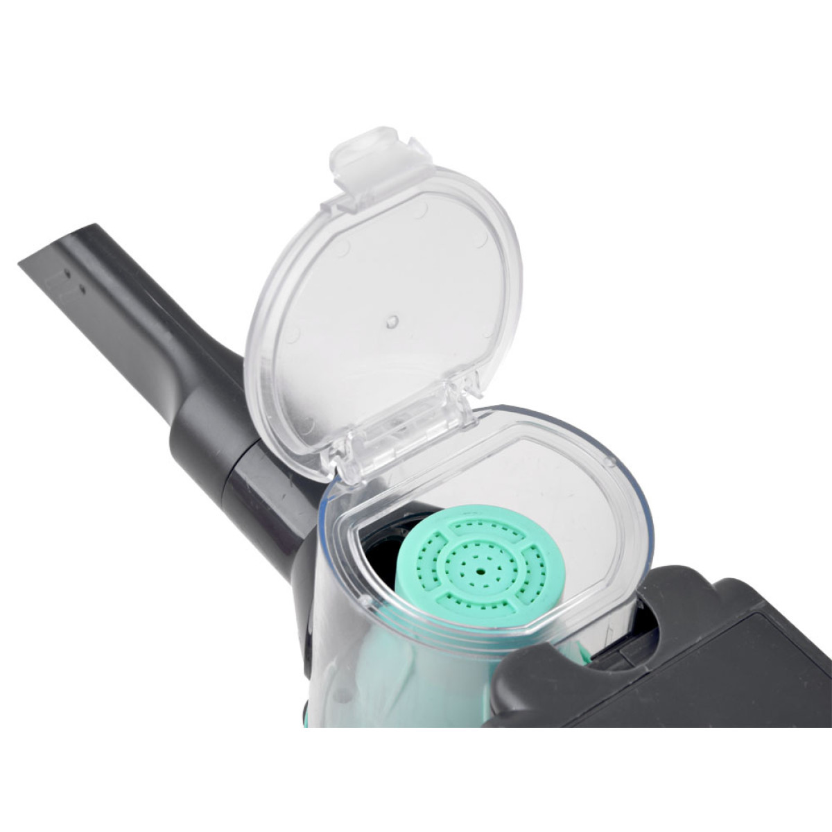 • Atidaromas dulkių konteineris leidžia išpilti susikaupusias šiukšles.