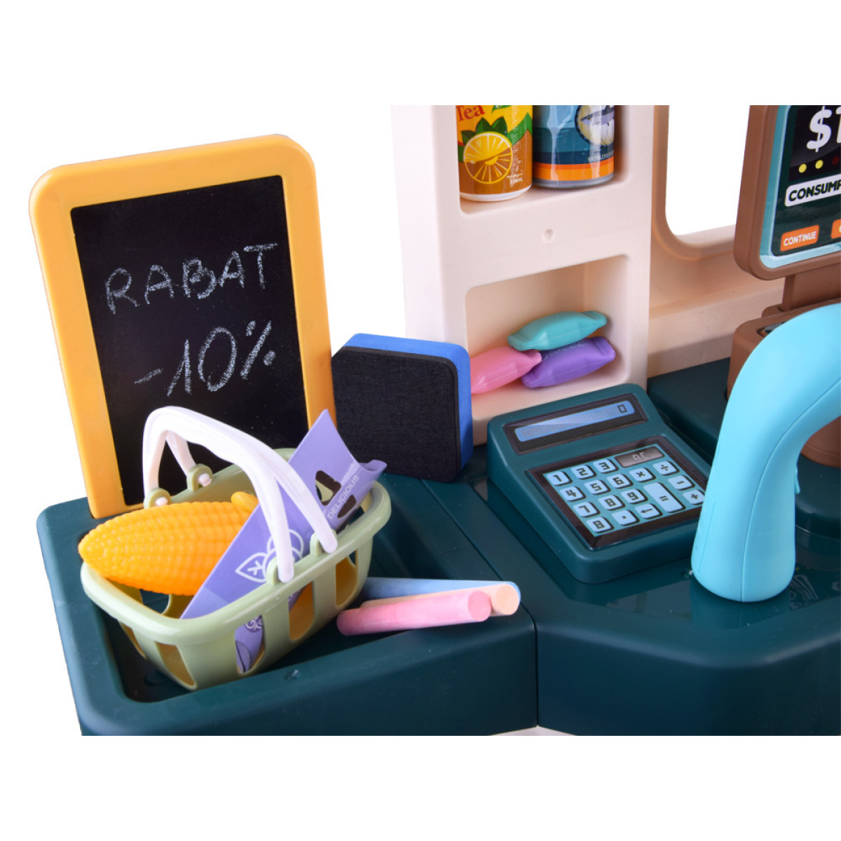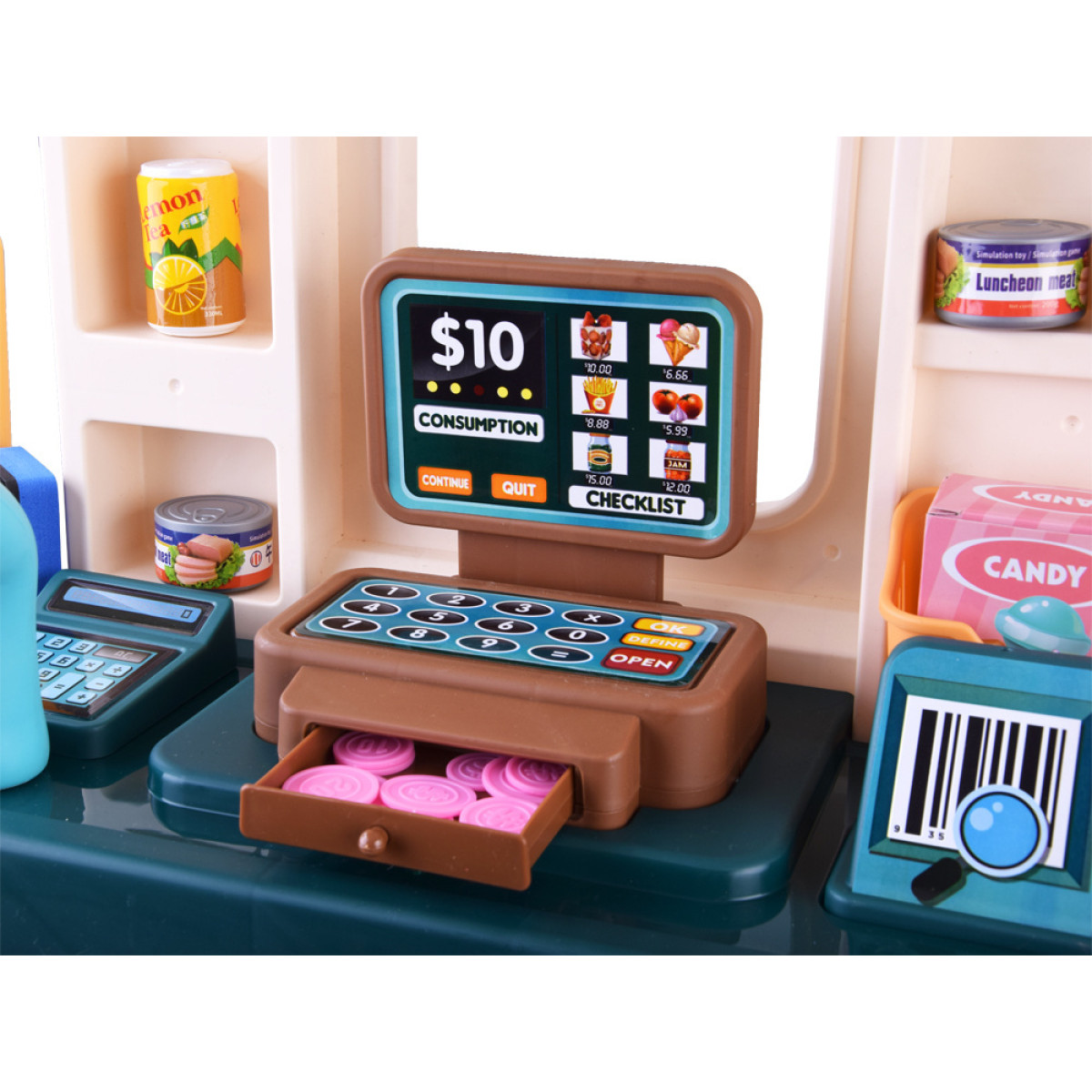 Parduotuvė turi nešiojamą kodo skenerį, kuris skleidžia garsą po kiekvieno produkto nuskaitymo. Kasa turi ištraukiamą stalčiuką pinigams, todėl žaidimas tampa dar tikroviškesnis.