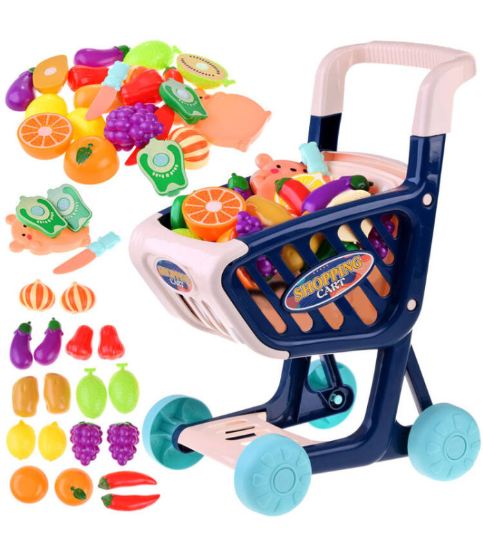 Vaikai mėgsta imituoti suaugusius kasdieninėse veiklose, todėl šis nuostabus vežimėlis su daržovėmis patiks kiekvienam mažam vaikui. Vežimėlis pagamintas iš plastiko, turi plačius ratus ir patogią rankeną. Daržovės ir vaisiai taip pat yra plastikiniai, ryškių spalvų. Suverti lipnia juostele, todėl vaikas galės žaisti pjaustydamas juos.