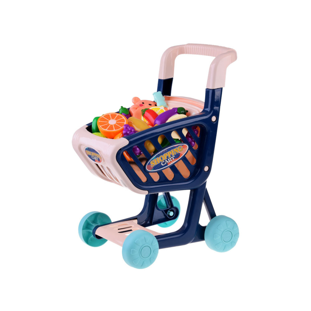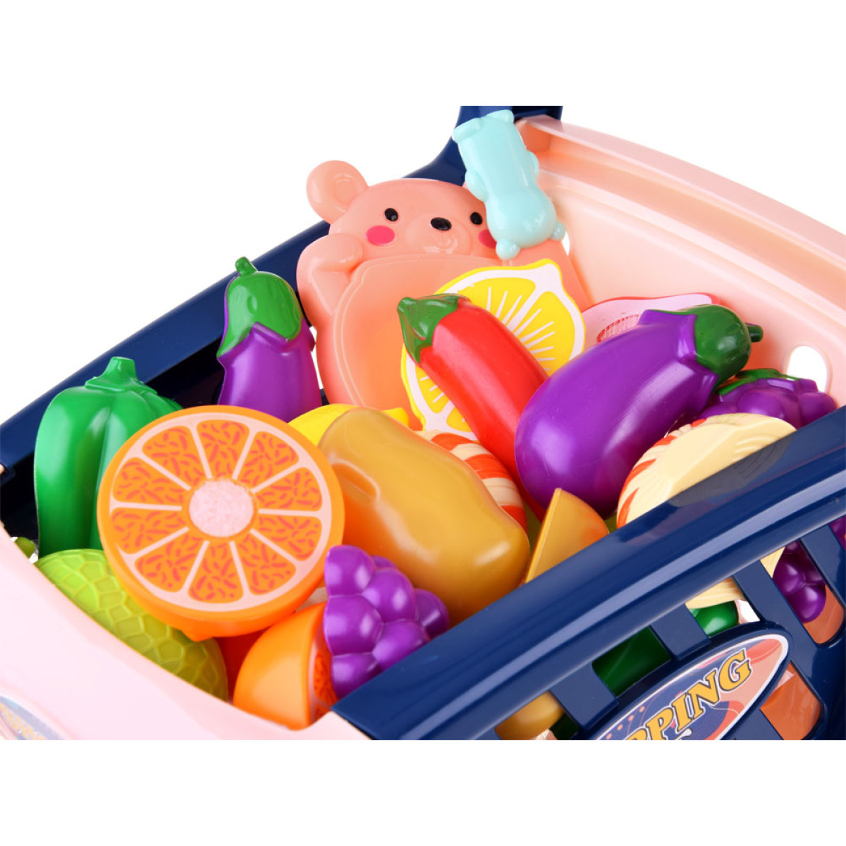 Vaikiškas pirkinių vežimėlis su daržovėmis ir vaisiais