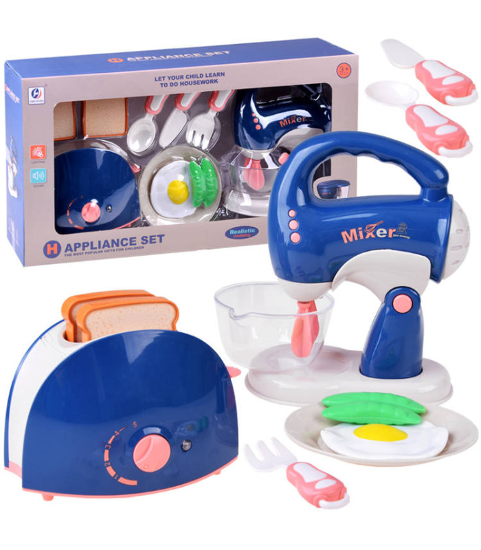 Mikseris yra būtinas atributas kiekvienoje virtuvėje, padedantis paruošti gardžius patiekalus ir skanėstus. Be to, rinkinį sudaro ir tosteris su skrudintais duonos gabaliukais, nes skrudinta duona dažnai yra pusryčių karalius - traški, kvapni ir skani. Šiame rinkinyje mažasis virėjas gali paruošti skanius skrudintus duonos gabaliukus su keptu kiaušiniu ir žaliais žirneliais... tai idealūs pusryčiai kiekvienai lėlei ir meškiukui.