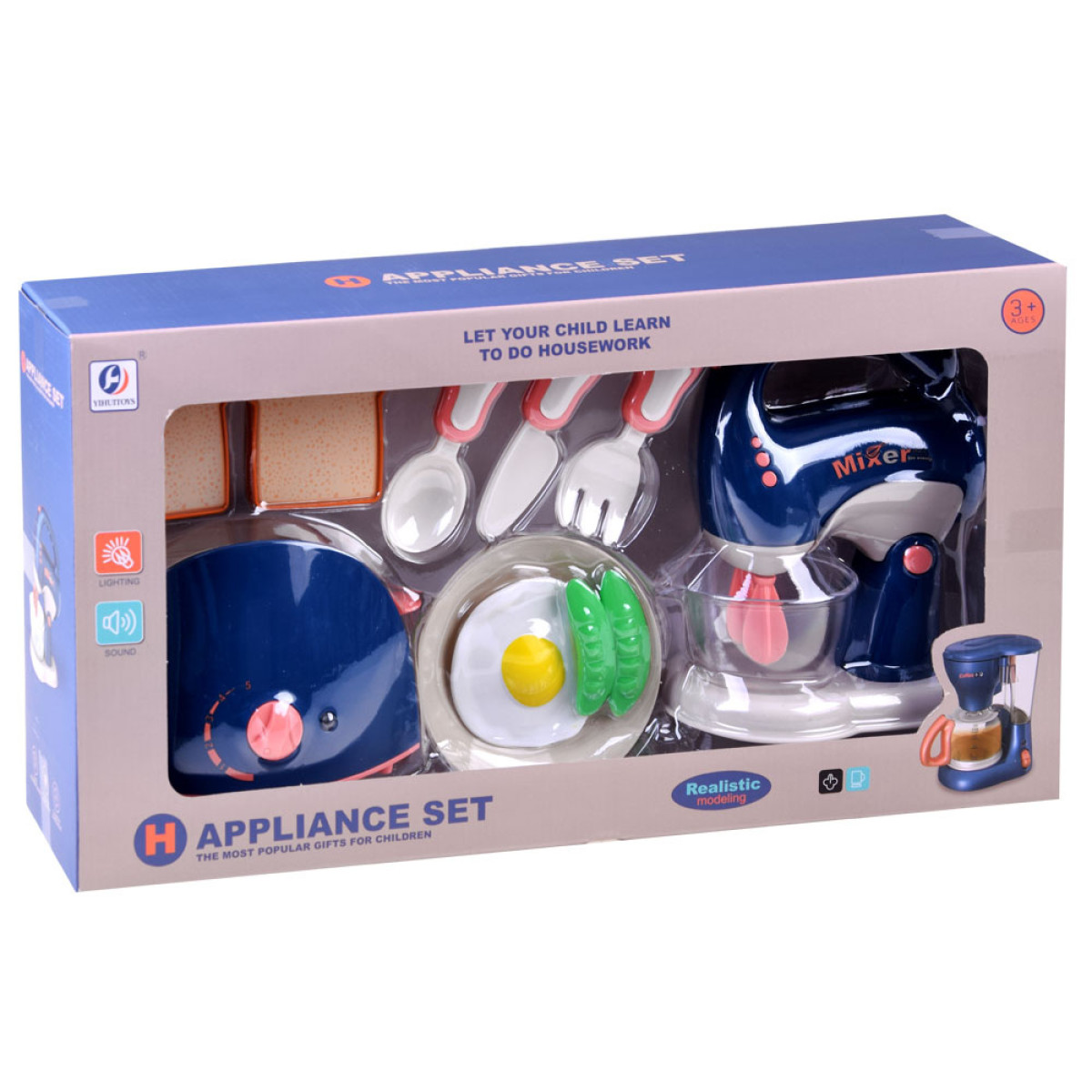 Mikseris ir tosteris pagaminti iš plastiko, subtilios spalvos, kuri puikiai derės prie bet kurios virtuvės. Įrenginiai veikia su baterijomis (mikserio baterijų skyrelis yra apatinėje dalyje, nuėmus nuo stovo). Veikimo metu šviečia dioda, rodanti įrenginio veikimą. Žaislai skleidžia realistiškus garsus. Mikseris turi stovą, kas leidžia vaikams atsitraukti nuo jo, kai netyčia pradeda skrusti skrudinta duona.