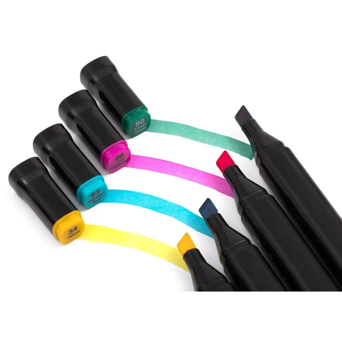 - Dėklas – spalvoti markeriai supakuoti į specialų dėklą, užsegama užtrauktuku. Šis dėklas leidžia išlaikyti tvarką ir nepamesti flomasterius.