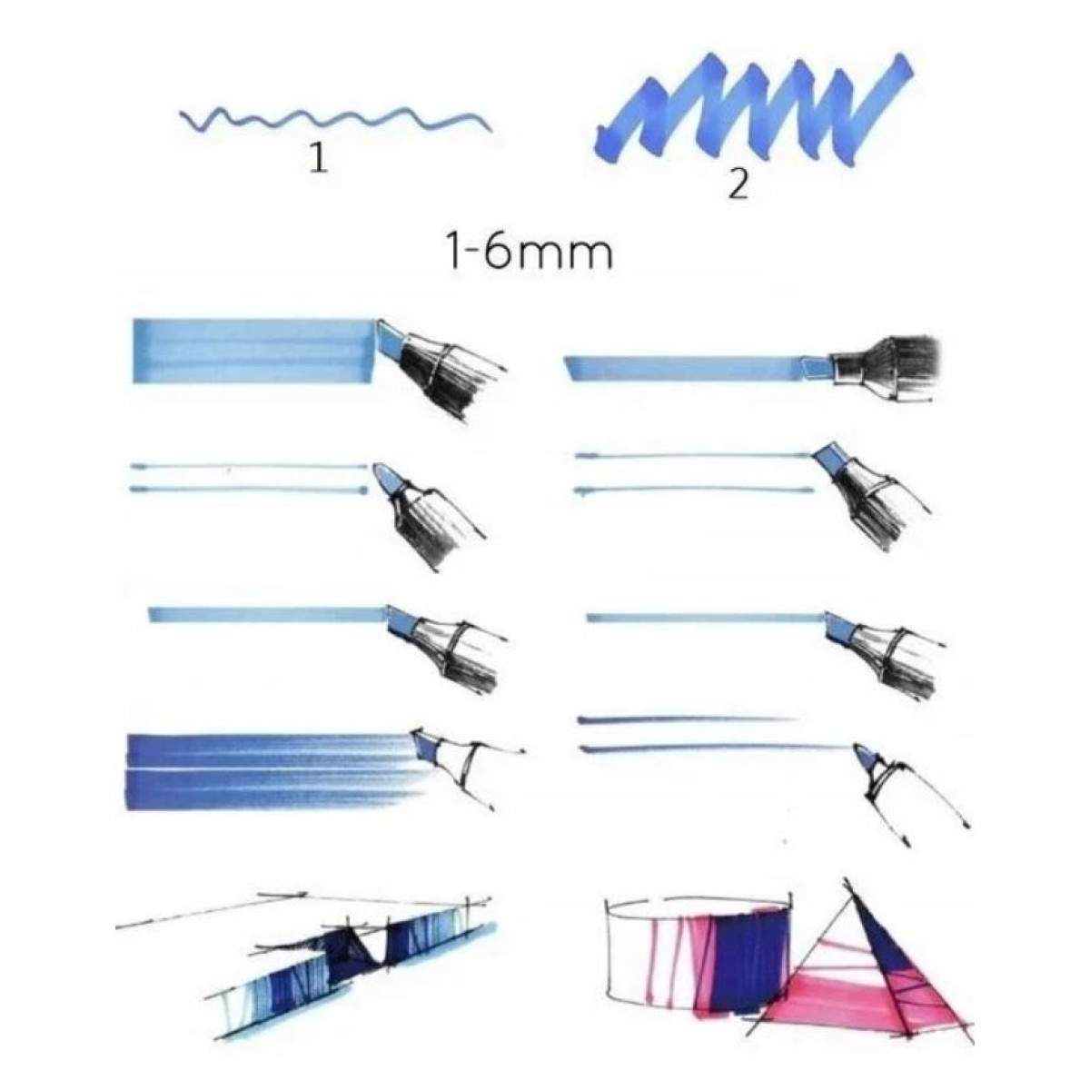 - Dvipusiai markeriai – Markeriai turi dvi puses, viena flomasterio pusė turi apvalią smailą galvutę, puikiai tinkančią rašymui ar piešimui, o kitoje – kampuotą galvutę, kuri puikiai tinka svarbiai informacijai žymėti.